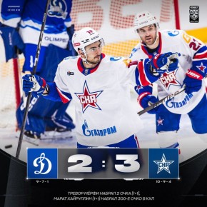 Петербургский СКА обыграл московское «Динамо» со счетом 3:2 в гостевом матче регулярного чемпионата «Фонбет» — КХЛ.В составе победителей шайбы забросили Джозеф Бландизи (23-я минута), Марат Хайруллин (31) и Тревор Мерфи (58). У проигравших...