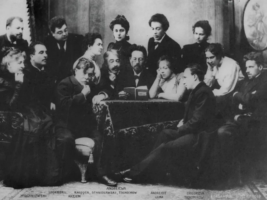 * Чтение Антоном Чеховым (в центре) пьесы «Чайка» артистам Московского Художественно-общедоступного театра. 1898–1899. Москва. Фотография: Петр Павлов / Союз фотохудожников России