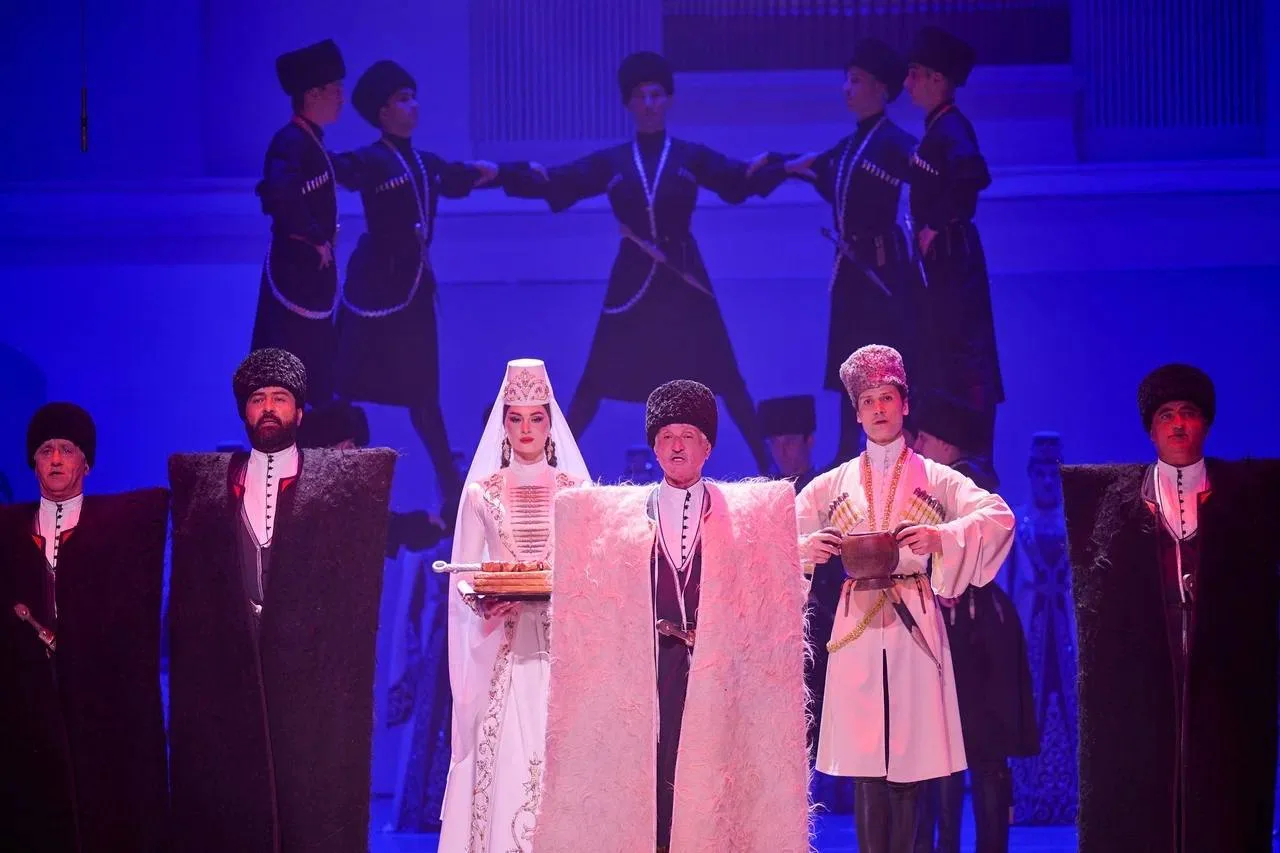 С широкой программой, включающей более 20 номеров, для гостей выступил Государственный ансамбль песни и танца Республики Южная Осетия «Симд» имени Бориса Галаева.