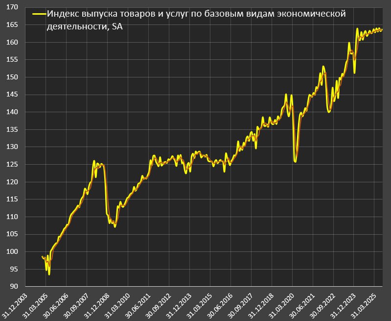 Если оценивать с исключением сезонного эффекта, с начала года прирост минимальный в пределах 0.5% (последние 3м к 4кв24), с середины 2025 динамика в пределах статистической погрешность, т.е. формально стагнация.