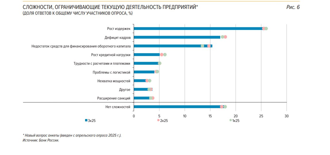 Обеспеченность персоналом улучшается 4 квартала подряд, рынок труда охлаждается до минимума в 3кв23, так в 3кв25 обеспеченность персоналом составила (-25.7п) после (-27.5п) в 2кв25 vs наибольшего напряжения на рынке труда в 3кв24 (-31.9п), (-30.8п) в 2024, (-23.5п) в 2023 и (-14.8п) в 2021.