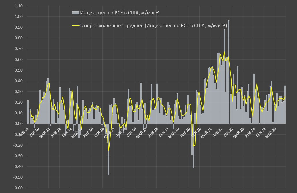 В декабре рост цен по PCE резко ускорился до 0.36% м/м SA – это максимальный рост с фев.25 (0.40%)