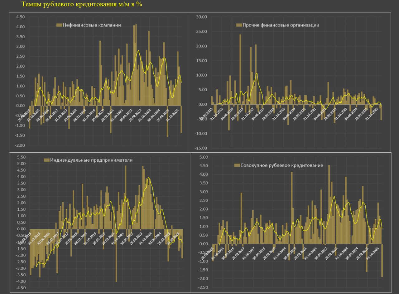 Кредитная активность держится за счет нефинансовых компаний, за последние три месяца +0.65% vs +0.30% в 2025, +0.78% в 2024, +1.39% в 2023 и +0.49% в 2022 за аналогичный период времени по среднемесячным темпам.