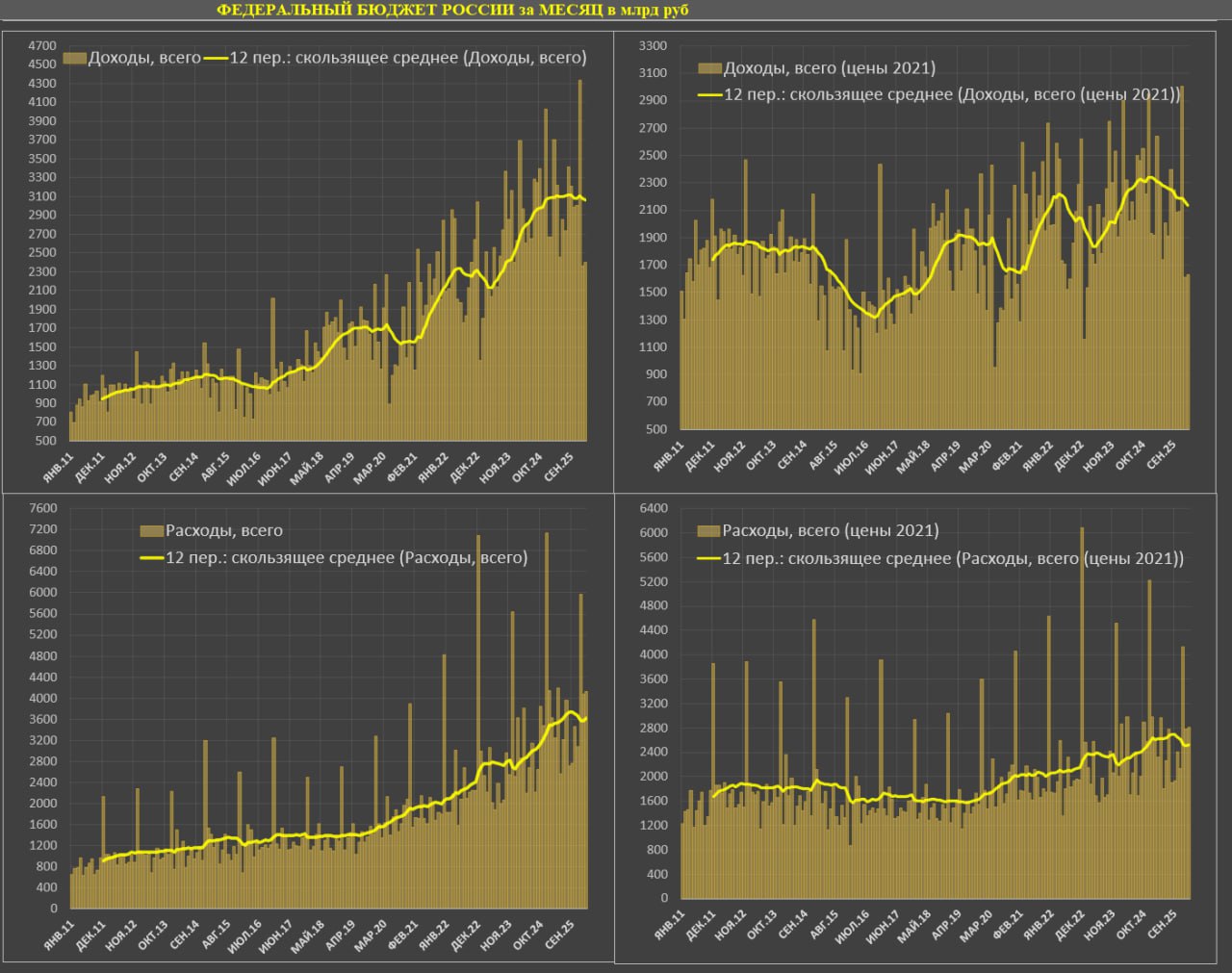 Сравнение за полгода важно, т.к с сен.25 Минфин начал стабилизировать бюджет, резко замедляя расходы, а с октября уже сокращая расходы в сравнении с прошлым годом.