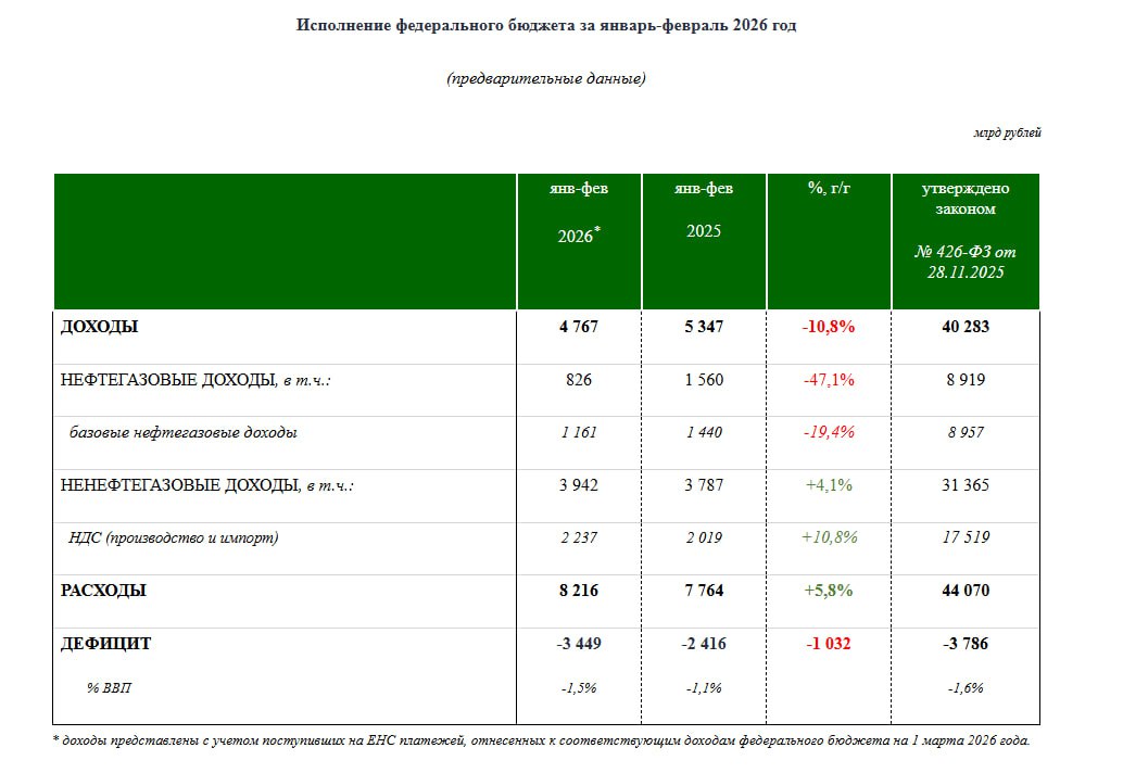 За два месяца дефицит составил 3449 млрд руб (1718 млрд в январе + 1731 млрд в феврале) vs 2416 млрд за 2м25, 1130 млрд за 2м24 и 2379 млрд за 2м23.