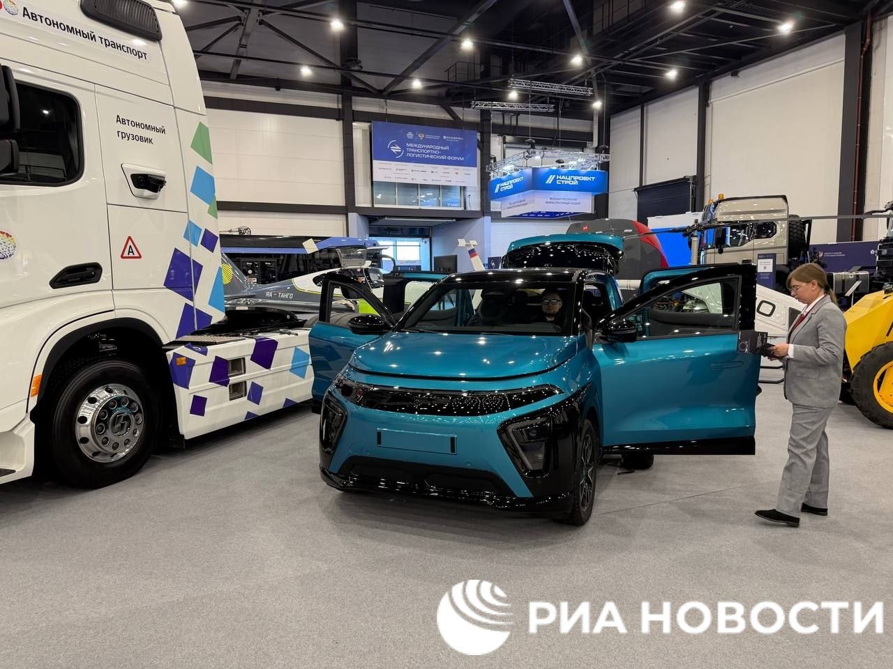 Систему прохождения в аэропорту по биометрии, роверы, отечественные электромобиль "Атом" и учебно-тренировочный самолет " Танго " показывают на транспортно-логистическом форуме в Санкт-Петербурге.