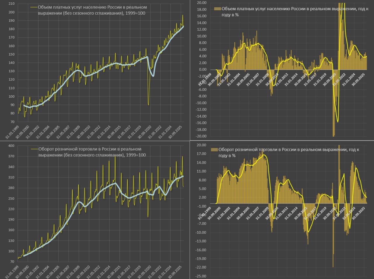 Замедление в начале 2026 – это среднегодовой темп роста 2011-2021, т.е. в рамках долгосрочной нормы, а за последние полгода потребительский спрос растет вдвое выше нормы, поэтому никаких проблем со спросом нет – аналогичное замедление было с февраля по июль 2025, далее осеннее ускорение.