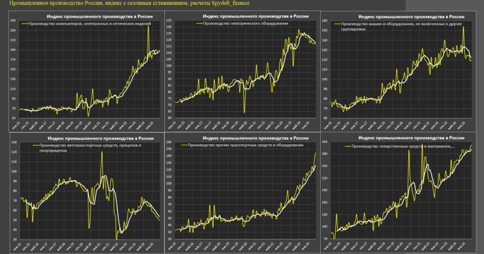 Из 24 отраслей лишь 6 в плюсе, причем базовых только четыре. Динамика продолжает ухудшаться, структурно динамика неоднородна с усилением волатильности.Из положительных аспектов российской обработки по наиболее значимым отраслям:• Производство...
