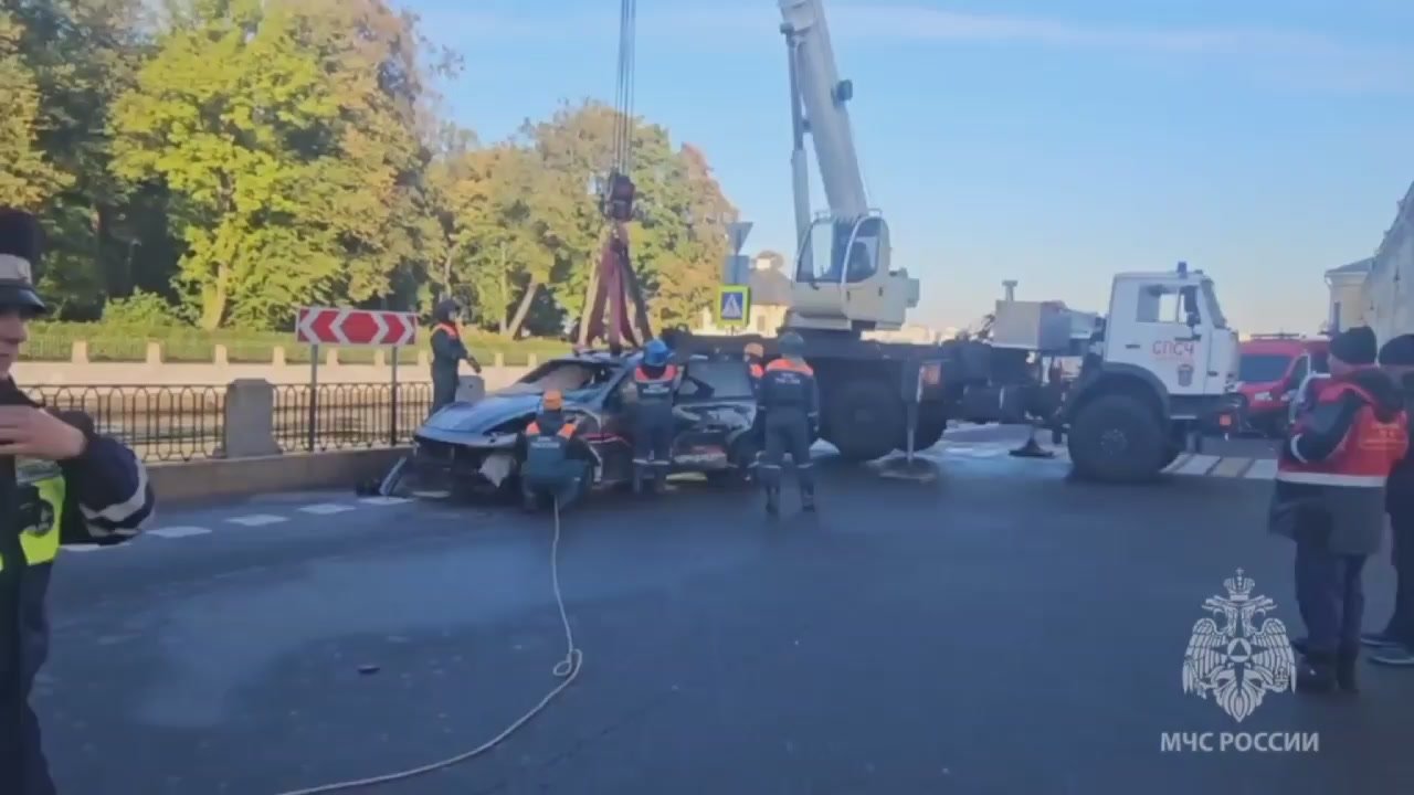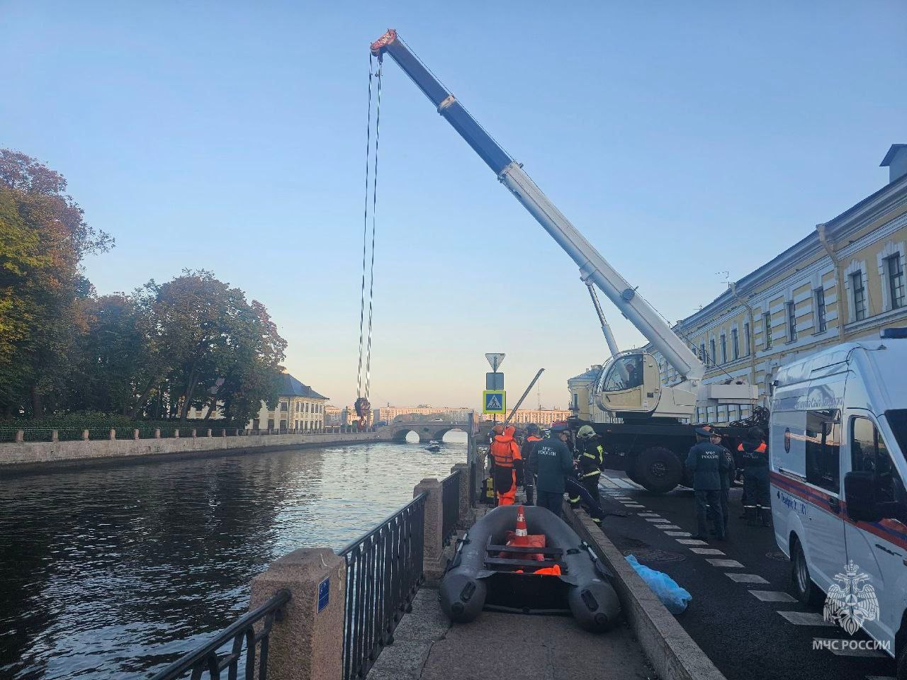 Этим утром у дома 6 по набережной реки Фонтанки легковой автомобиль, пробив ограждение набережной, упал в воду.