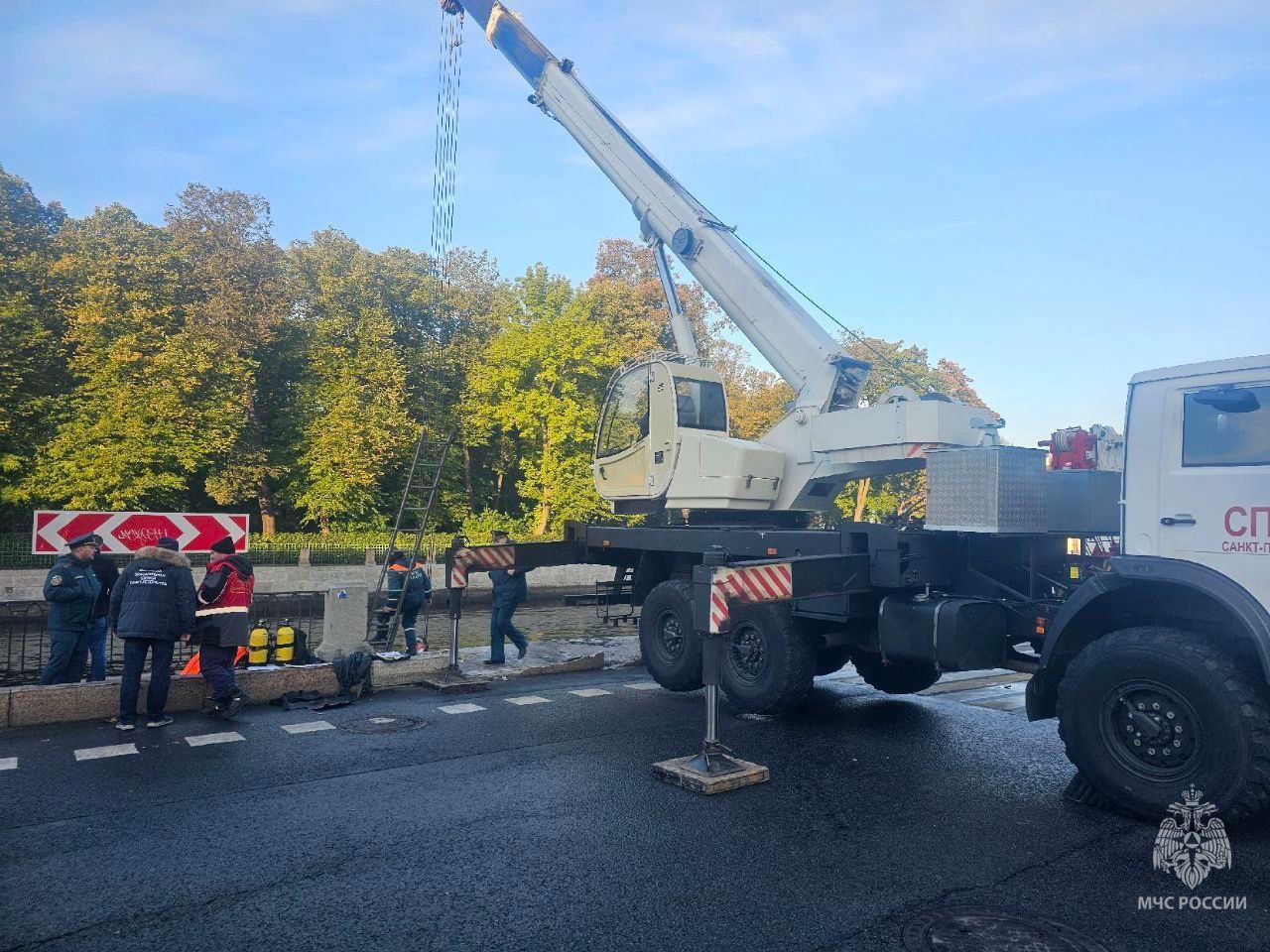 Спасатели и водолазы #МЧС_Петербурга и Поисково-спасательной службы подняли автомобиль из реки с помощью автокрана и спецредств.