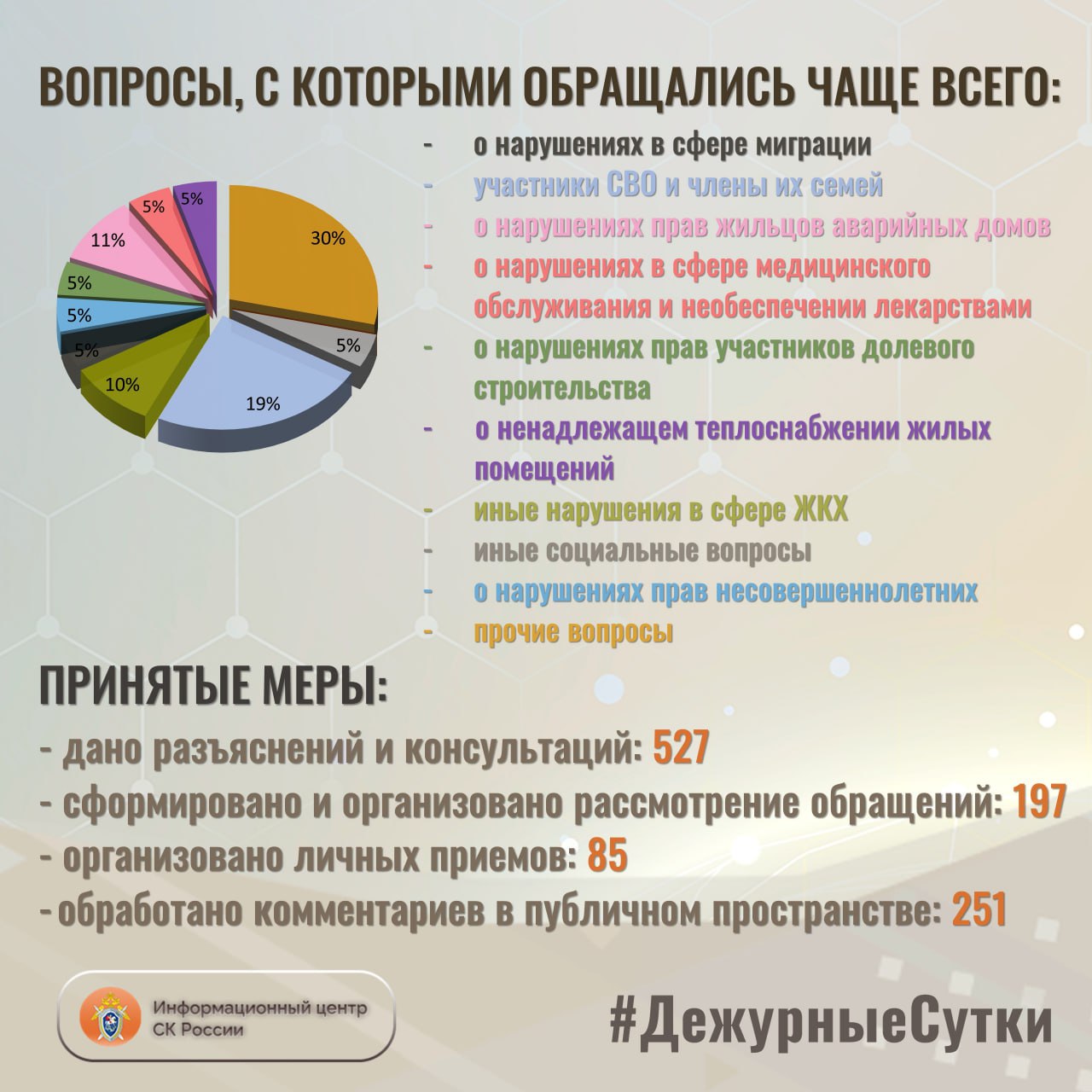 В Информационный центр СК России за прошедшие сутки всего обратилось граждан: 724