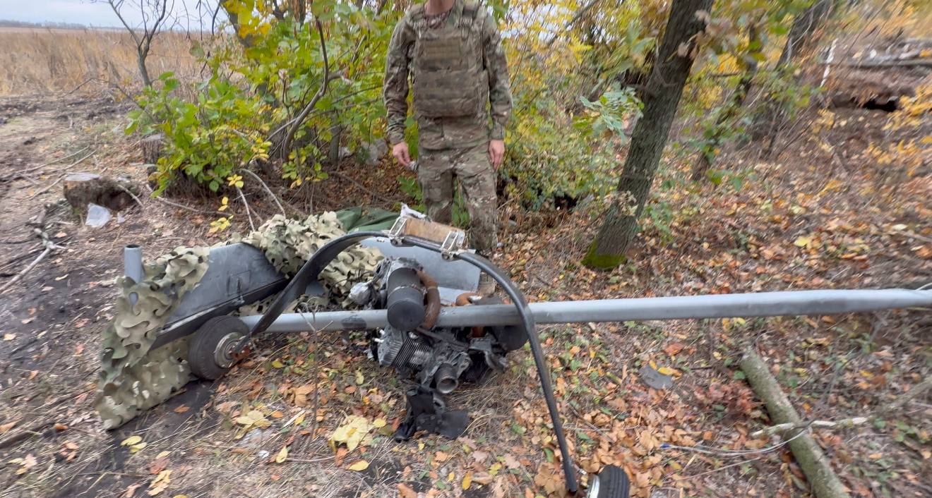 Черт знает где, за тысячу с лишним. А это - сбитый ночью на Краснолиманском направлении украинский тяжелый дрон PD-2. Один из шести сбитых за вчера одной только дивизией. Сбивали пулеметами, автоматами и FPV-дронами с дистанционным подрывом. Такие летят в сторону наших НПЗ.