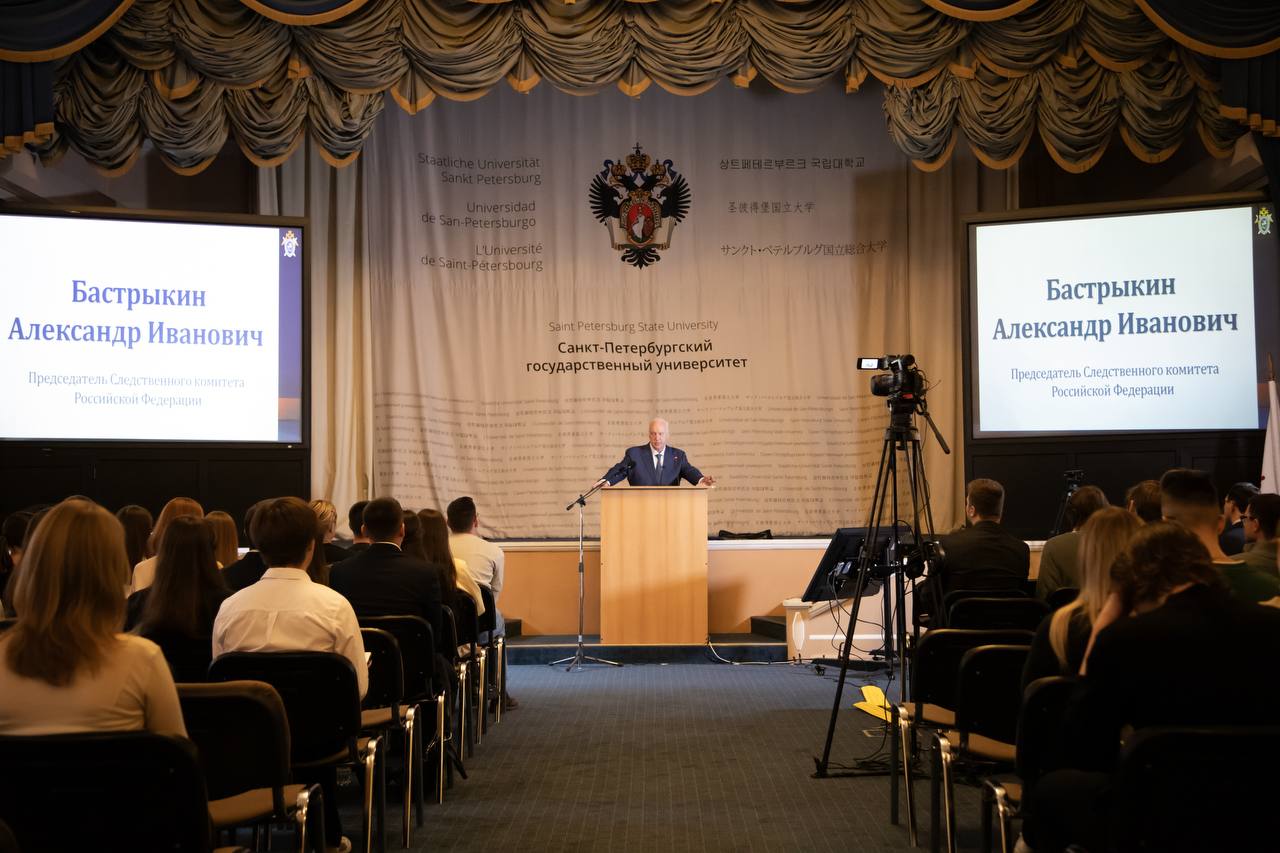 Председатель СК России прочитал лекцию для студентов Санкт-Петербургского государственного университета в рамках курса «Розыск. Дознание. Следствие»