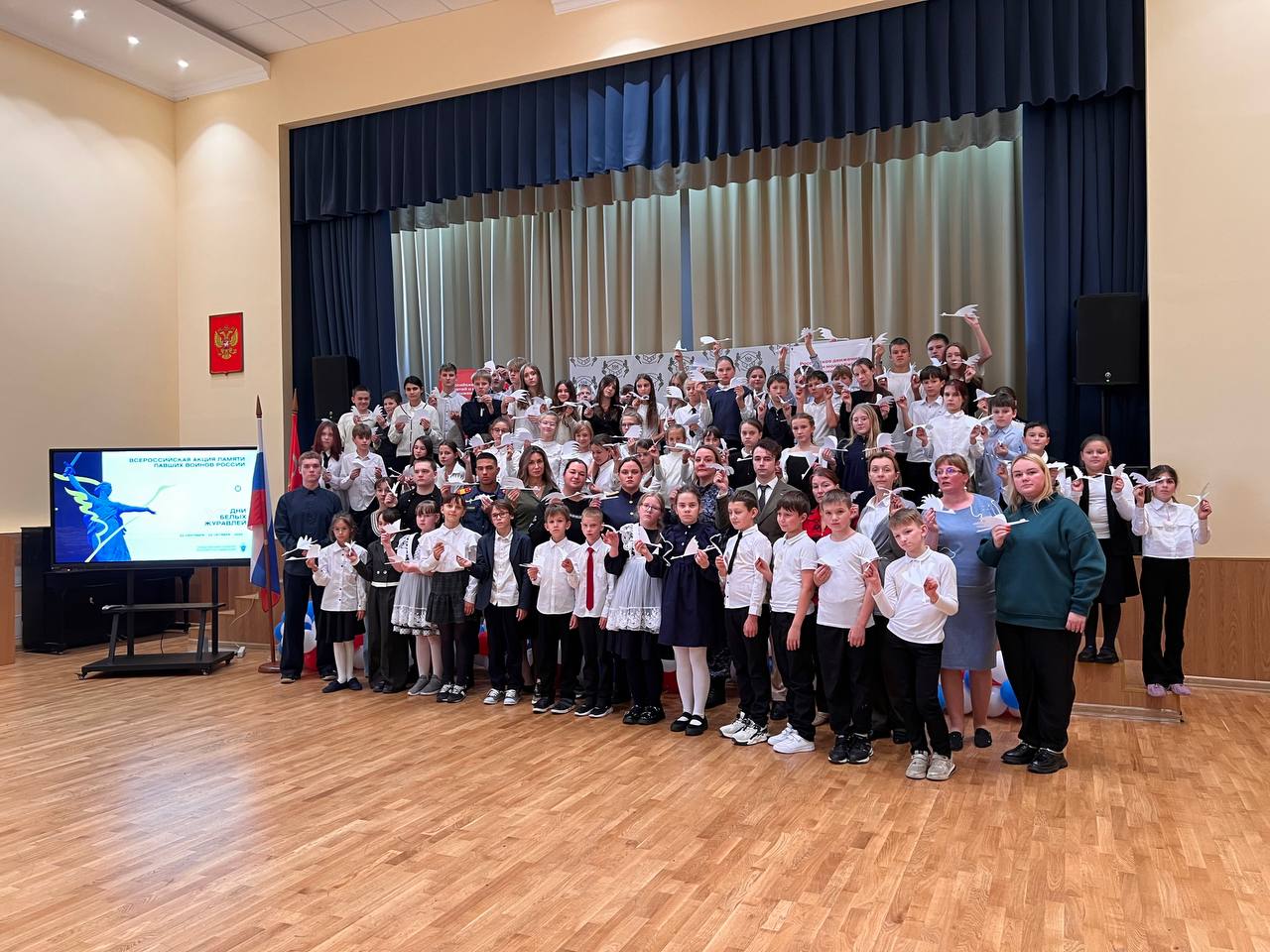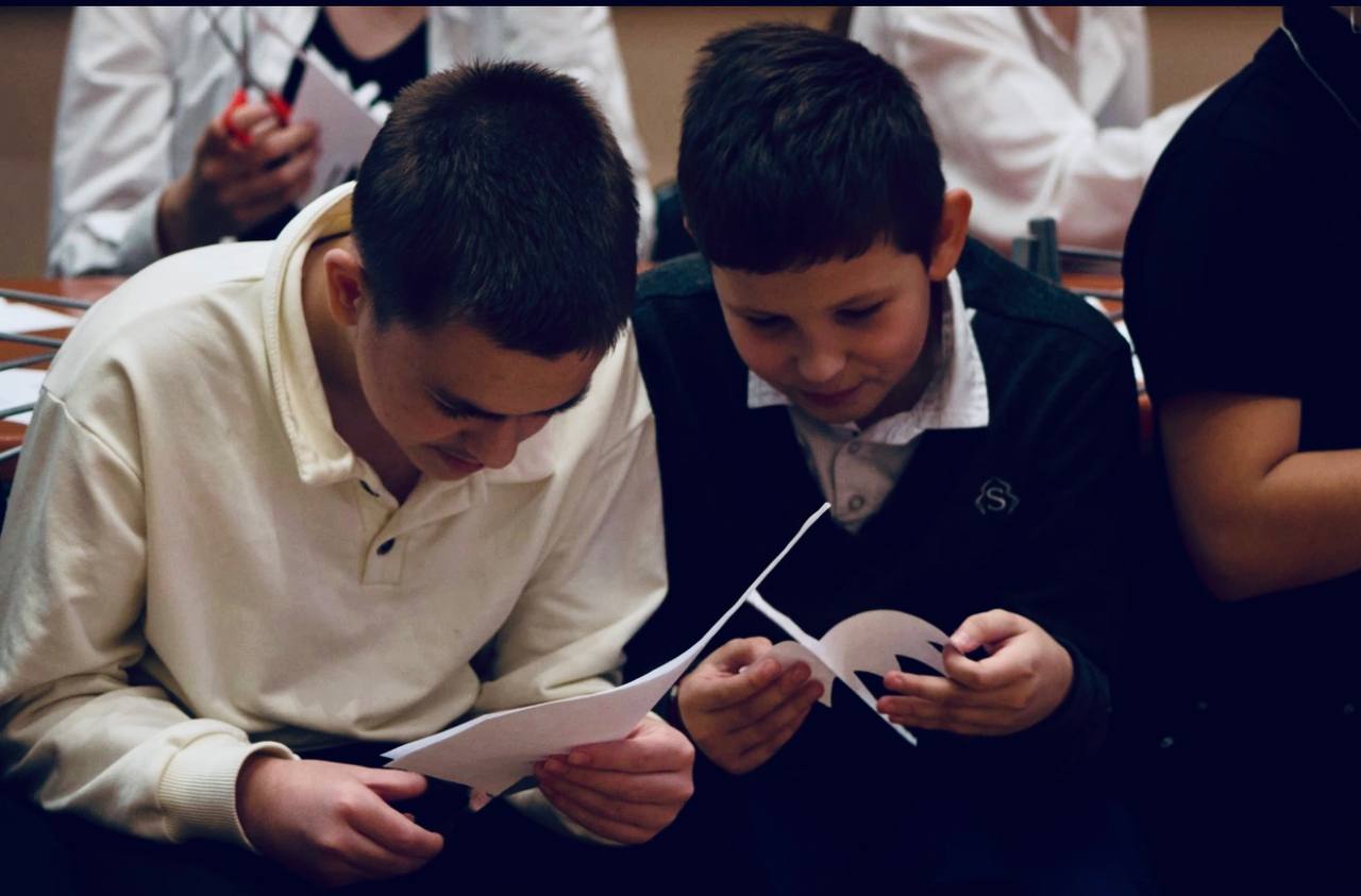 По завершении мастер-класса, школа №556 украсилась сотнями белых бумажных журавлей, созданных руками детей. Эти хрупкие, но полные глубокого смысла фигурки стали живым напоминанием о тех, кто сражался и пал, защищая Родину.