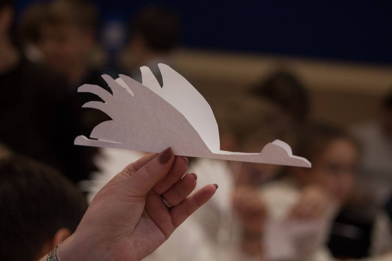 В рамках мероприятия, которое проходило в теплой и торжественной атмосфере, дети с усердием и трепетом вырезали из бумаги белых журавлей. Каждый сложенный лепесток, каждая аккуратно выведенная линия крыла символизировали глубокое уважение и благодарность тем, кто отдал свои жизни за мирное небо над головой. Юные участники с интересом слушали рассказы о героизме и самоотверженности, задавали вопросы, стараясь лучше понять значение подвига защитников Отечества.