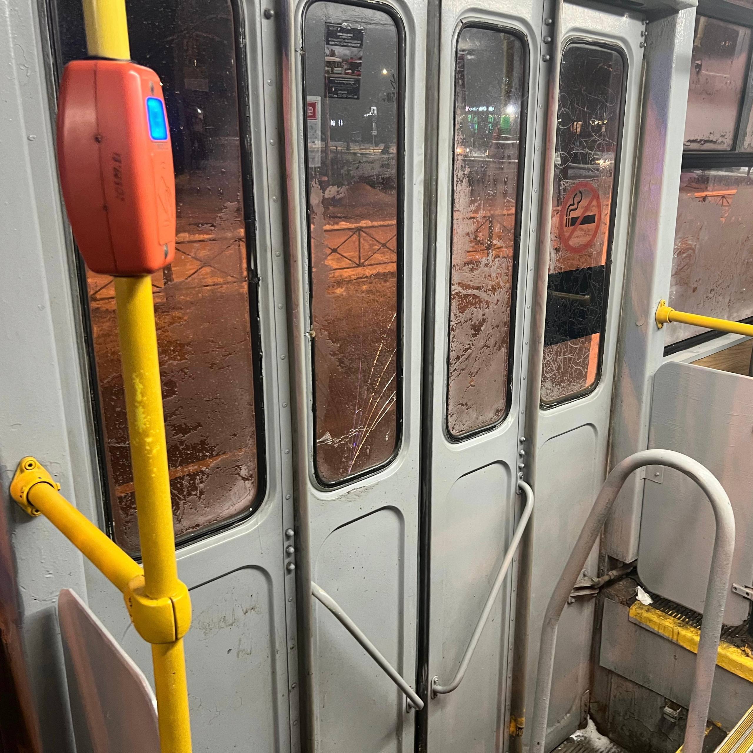 Перед судом предстанет пассажир трамвая, разбивший стекло двери