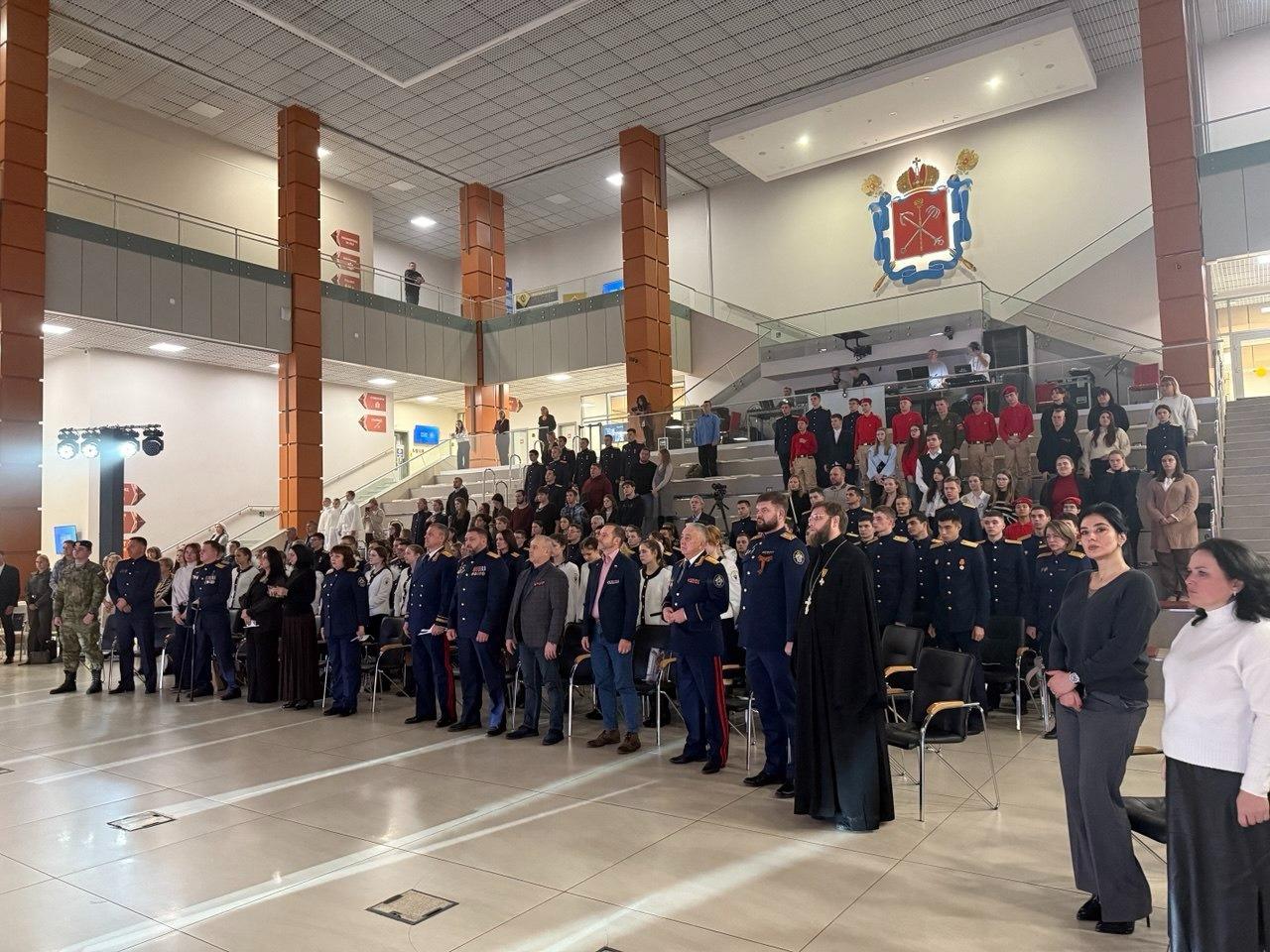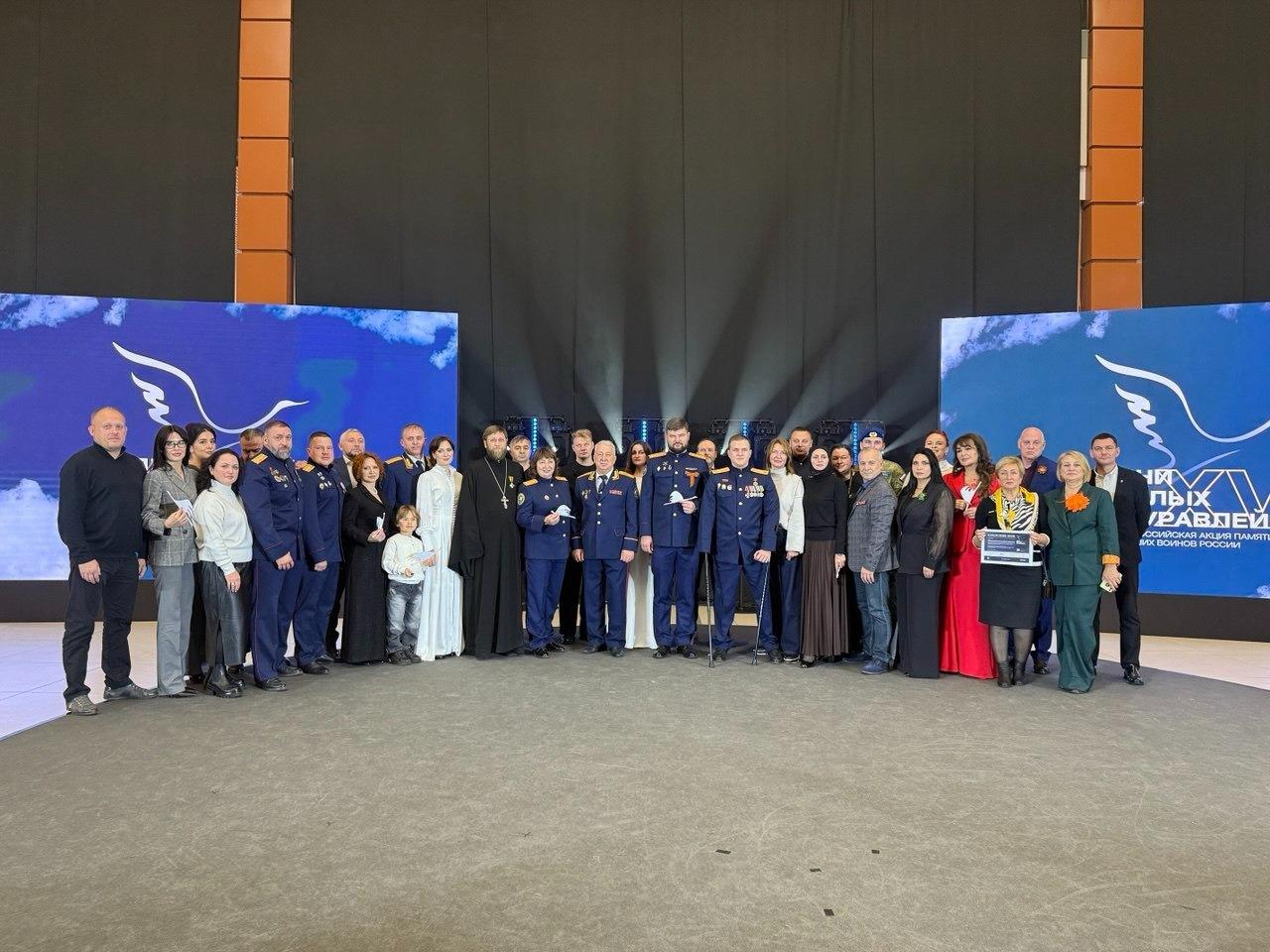 Торжественное мероприятие началось с награждения лауреатов молодежной премии в сфере гражданско-патриотического воспитания. За вклад в дело увековечивания памяти о павших героях в рамках XV Всероссийской акции «Дни белых журавлей» памятной грамотой от имени настоятеля Орденского Андреевского собора иерея Артемия Наумова награжден директор Северо-Западного филиала Судебно-экспертного центра СК России Р.В. Беспамятнов.
