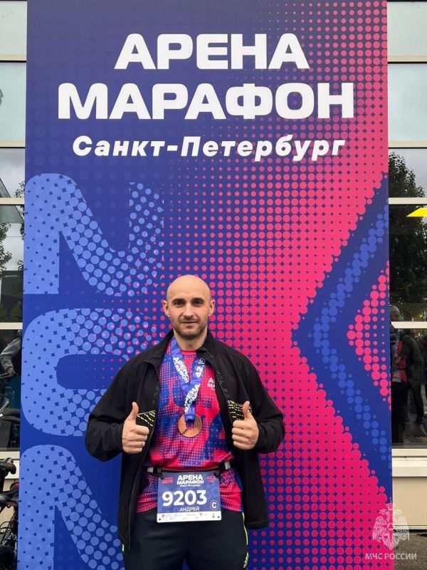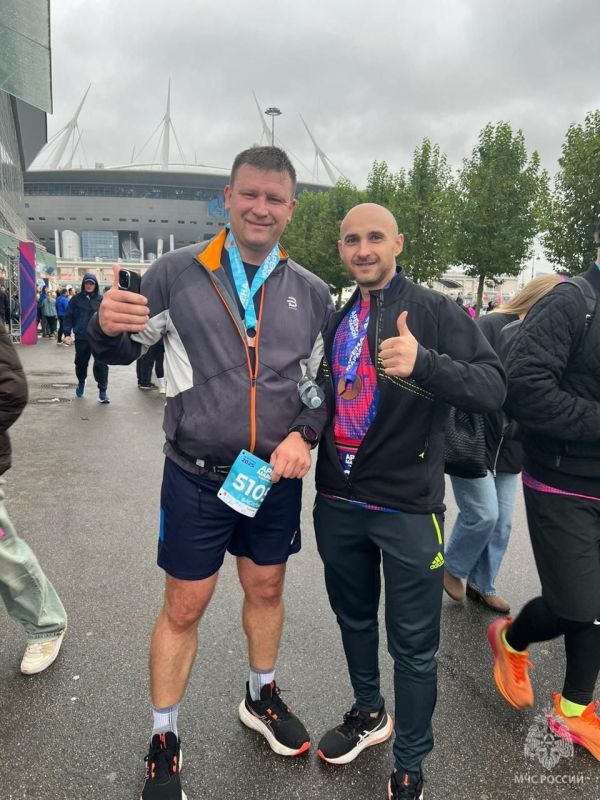 Так, к примеру начальник управления по Адмиралтейскому району #МЧС_Петербурга Андрей Мазин преодолел марафонскую дистанцию 42 км за 3 часа 32 минуты
