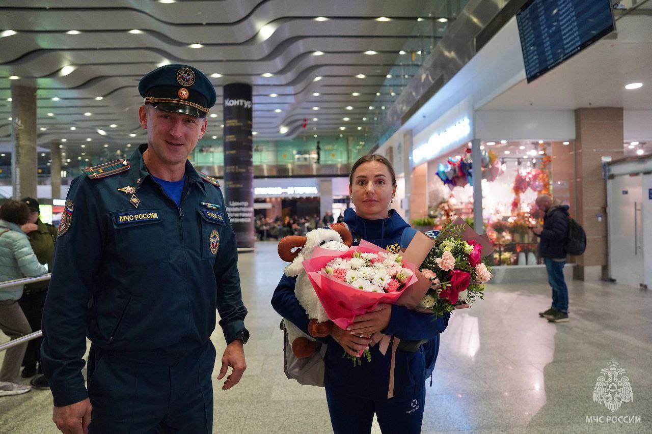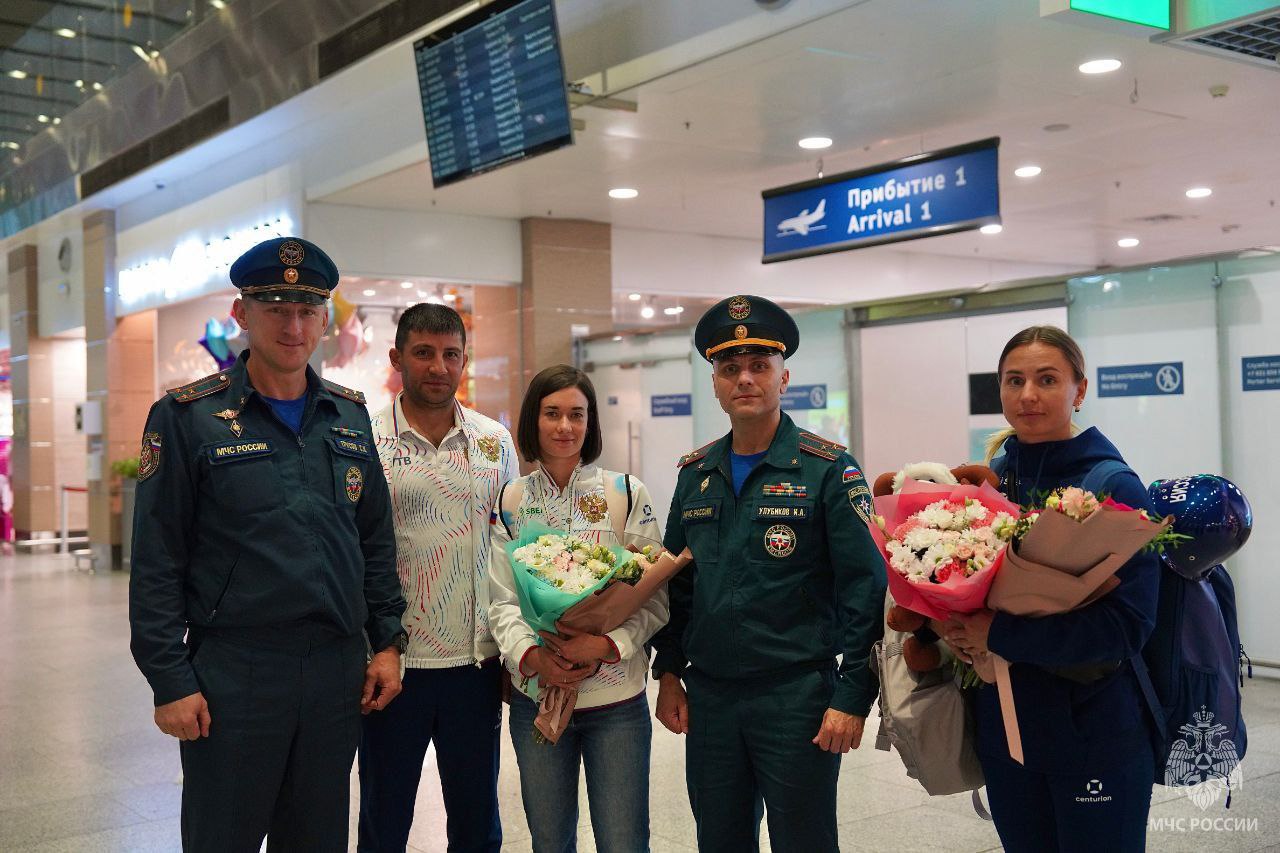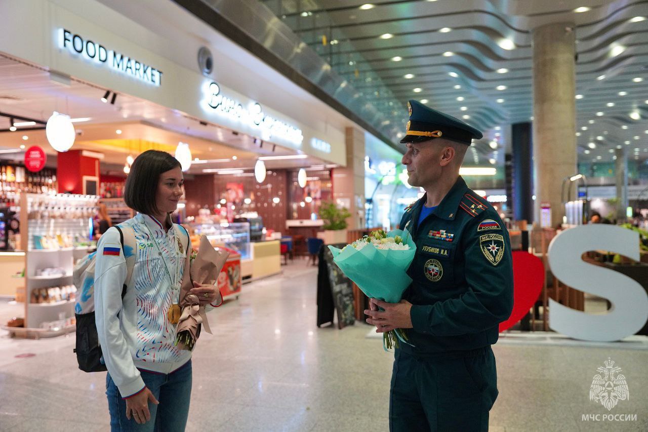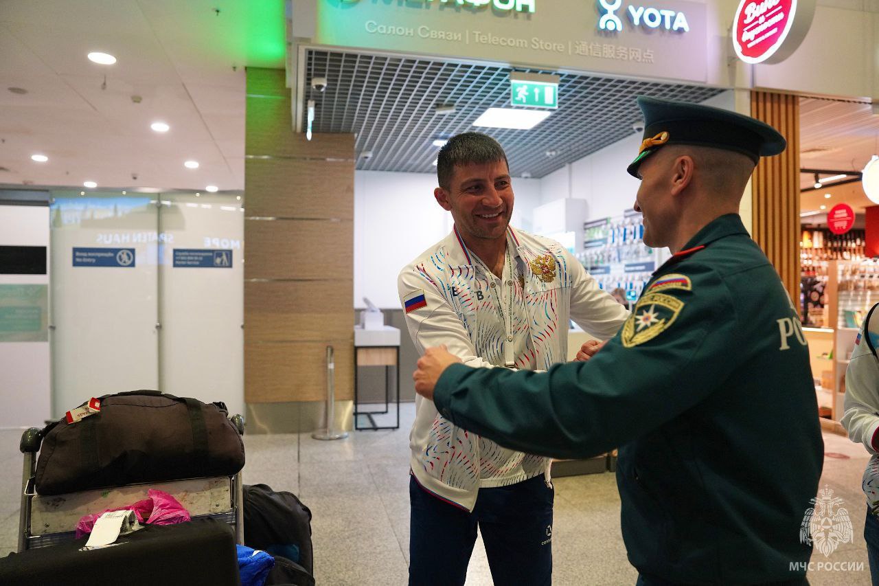 В аэропорту Пулково торжественно встретили членов сборной МЧС России - триумфаторов чемпионата мира по пожарно-спасательному спорту