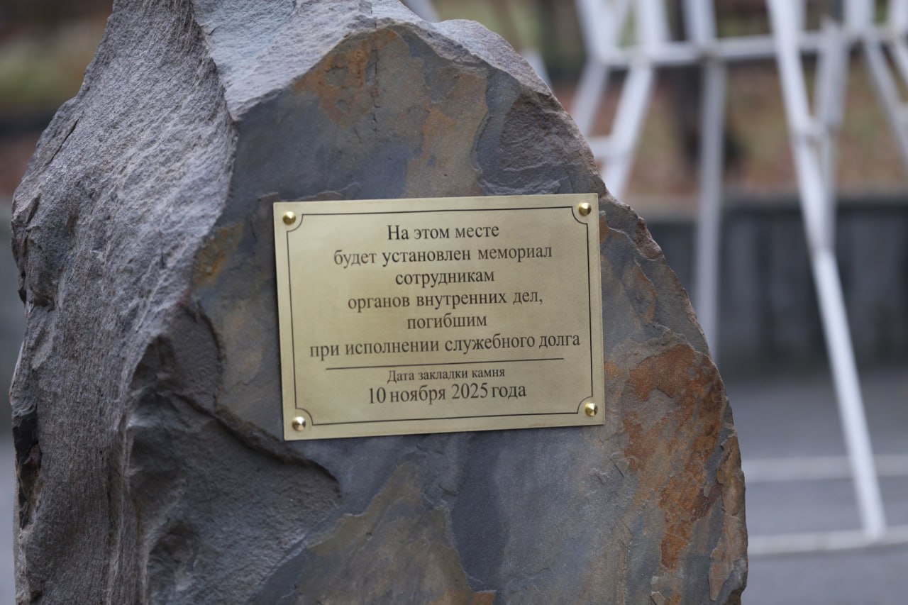 Первый заместитель Главы МВД России принял участие в церемонии открытия закладного камня на месте будущего мемориала, посвященного погибшим сотрудникам органов внутренних дел.