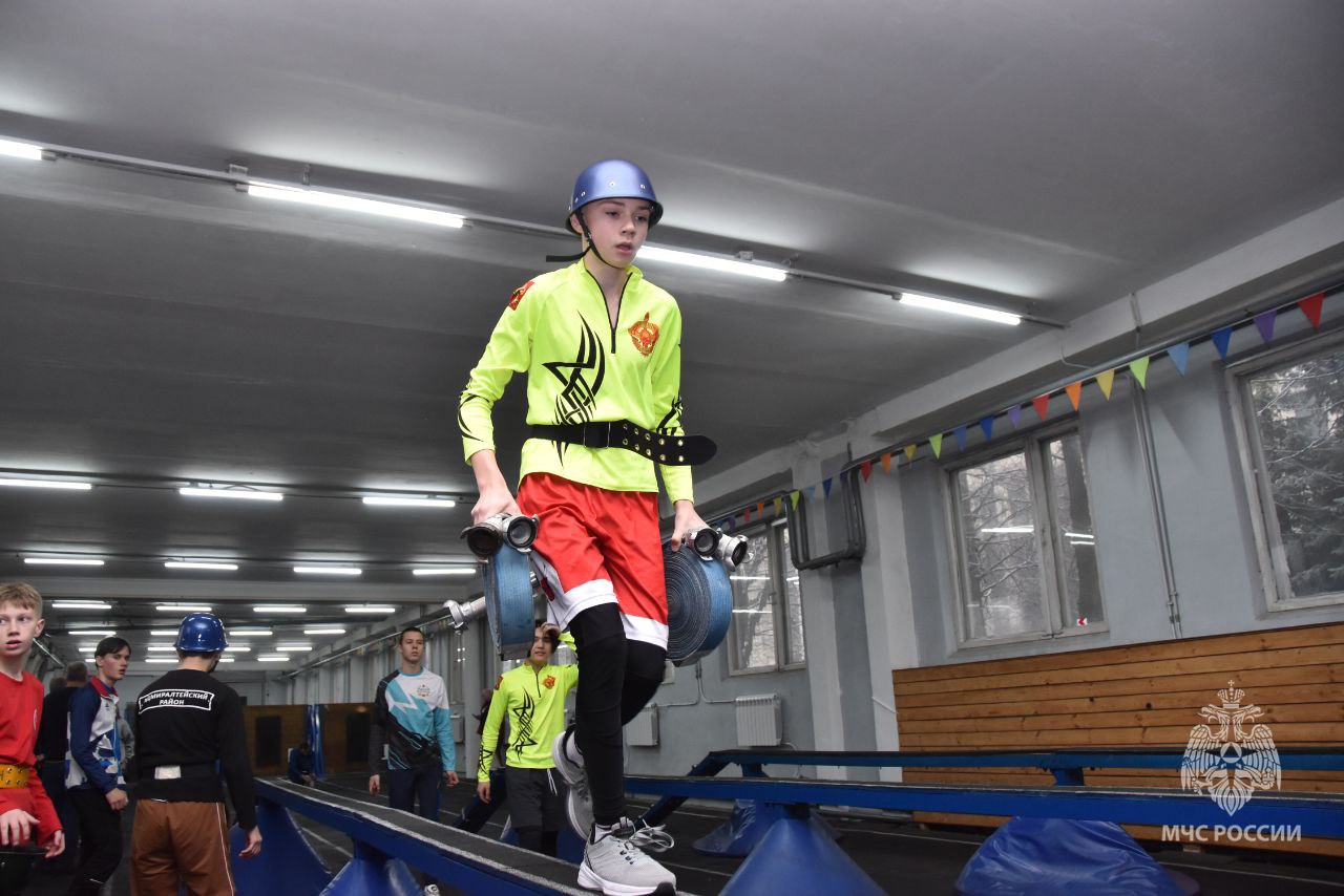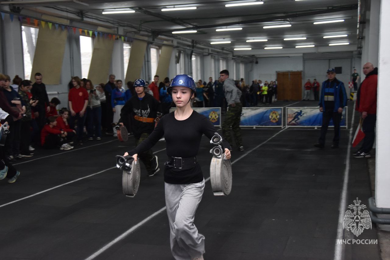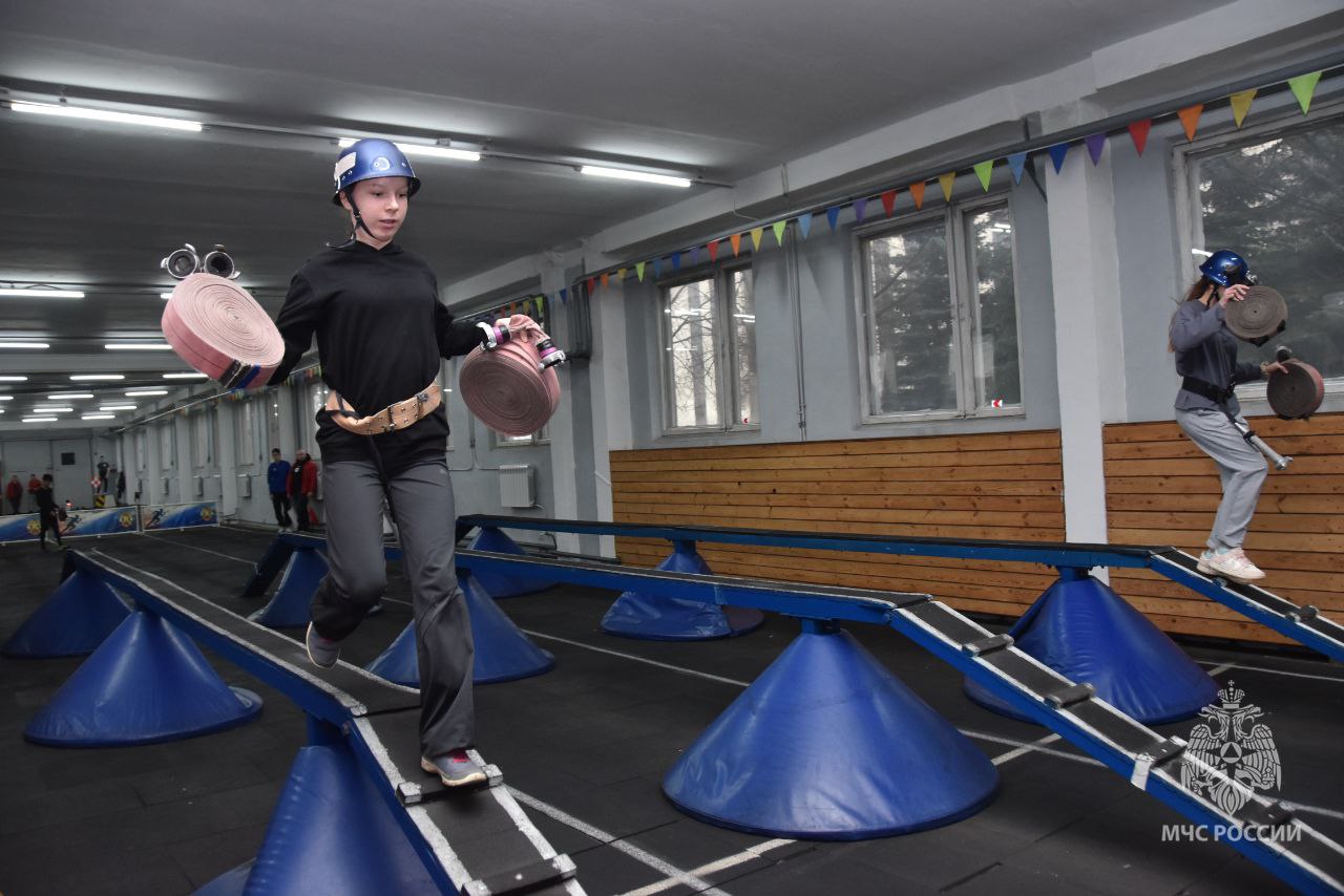 команды юношей и девушек - свышеучастников в течение двух дней состязаются в преодолении 100-метровой полосы с препятствиями и подъеме по штурмовой лестнице в окно учебной башни.
