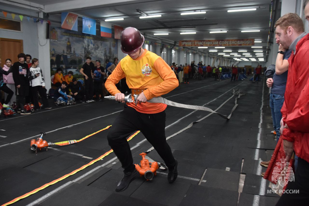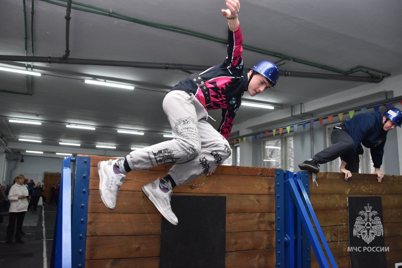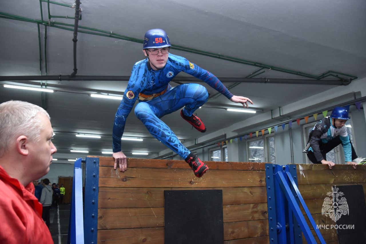 команды юношей и девушек - свышеучастников в течение двух дней состязаются в преодолении 100-метровой полосы с препятствиями и подъеме по штурмовой лестнице в окно учебной башни.