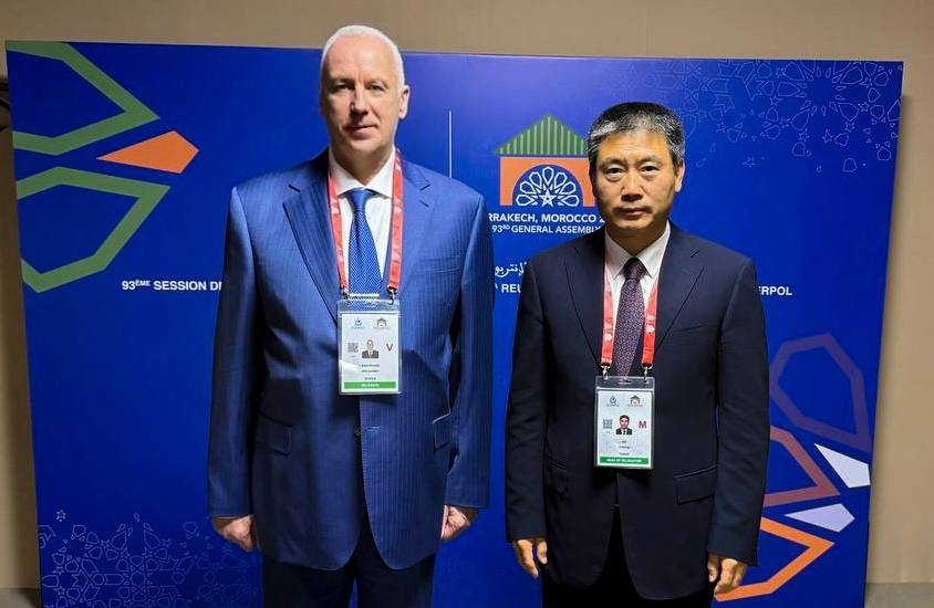 В городе Марракеше Королевства Марокко на полях 93-ей сессии Генеральной ассамблеи Интерпола Председатель СК России Александр Иванович Бастрыкин при участии начальника Национального центрального бюро Интерпола МВД России Валерия Анатольевича Калачёва провел встречу с заместителем Министра общественной безопасности Китайской Народной Республики Сюй Датуном.