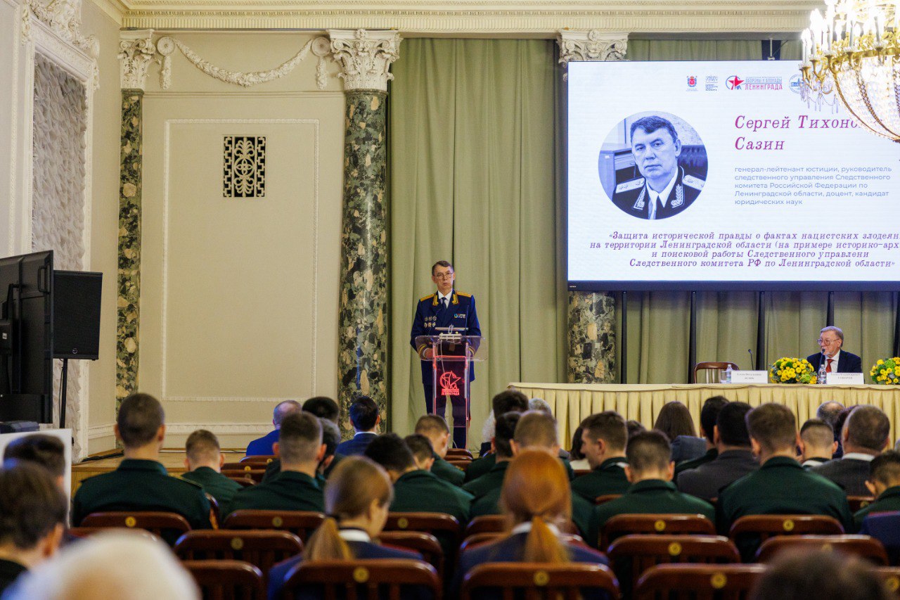 На пленарном заседании Сергей Тихонович Сазин выступил с докладом «Защита исторической правды о фактах нацистских злодеяний на территории Ленинградской области (на примере историко-архивной и поисковой работы Следственного управления Следственного комитета РФ по Ленинградской области». Он отметил, что сохранение исторической правды о подвиге предков, отстоявших свободу и независимость нашей Родины, является священным долгом для всех граждан России. Сергей Тихонович подчеркнул значимость поискового движения, которое открывает ранее неизвестные события и факты нашего общего прошлого. Он добавил, что одну из первостепенных ролей в проведении работ по установлению мест захоронений мирных жителей играют архивные документы и музейные предметы, содержащие сведения о фактах злодеяний немецко-фашистских захватчиков и их сообщников.