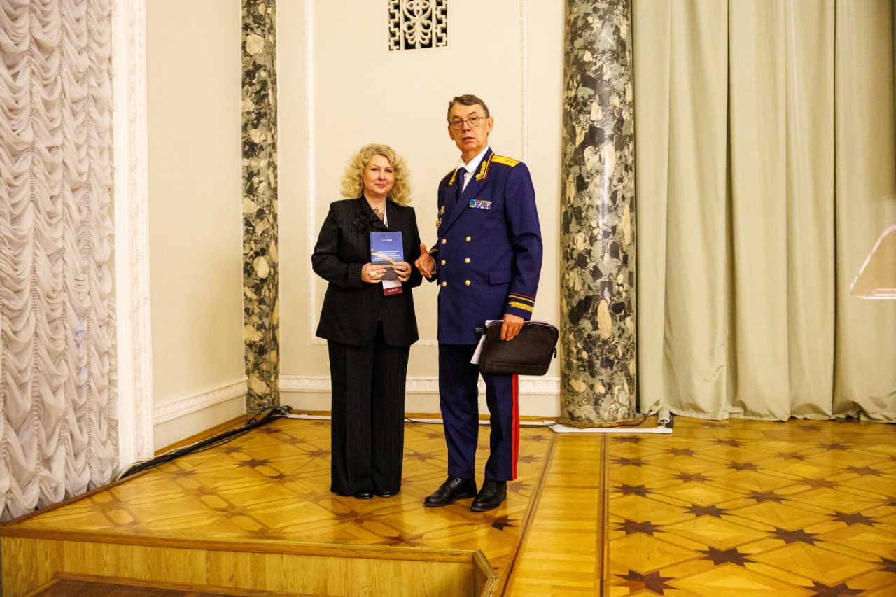 «Указанное обосновывает важность правового преследования преступлений, совершенных немецко-фашистскими захватчиками в период Великой Отечественной войны на территории Ленинградской области, свидетельствует о доказанности в это непростое для Родины время исторической правды, достижении справедливости в защиту национальных интересов нашей страны. Результаты анализа складывающейся ситуации и проводимой работы, говорят о том, что в России давно назрела необходимость формирования особой государственной идеологии, которая была бы основана и закрепляла ключевые духовно-нравственные ценности для российского общества, в том числе высокую ответственность за свою страну и свою семью, что являлось бы приоритетным направлением развития правовой системы», - подчеркнул Сергей Тихонович.В ходе мероприятия руководитель следственного управления СК России по Ленинградской области Сергей Тихонович Сазин передал директору Государственного мемориального музея обороны и блокады Ленинграда Елене Лезик книгу под своим авторством "Защита исторической правды о фактах нацистских злодеяний в Ленинградской области", изданную в 2025 году на основании материалов следственного управления.
