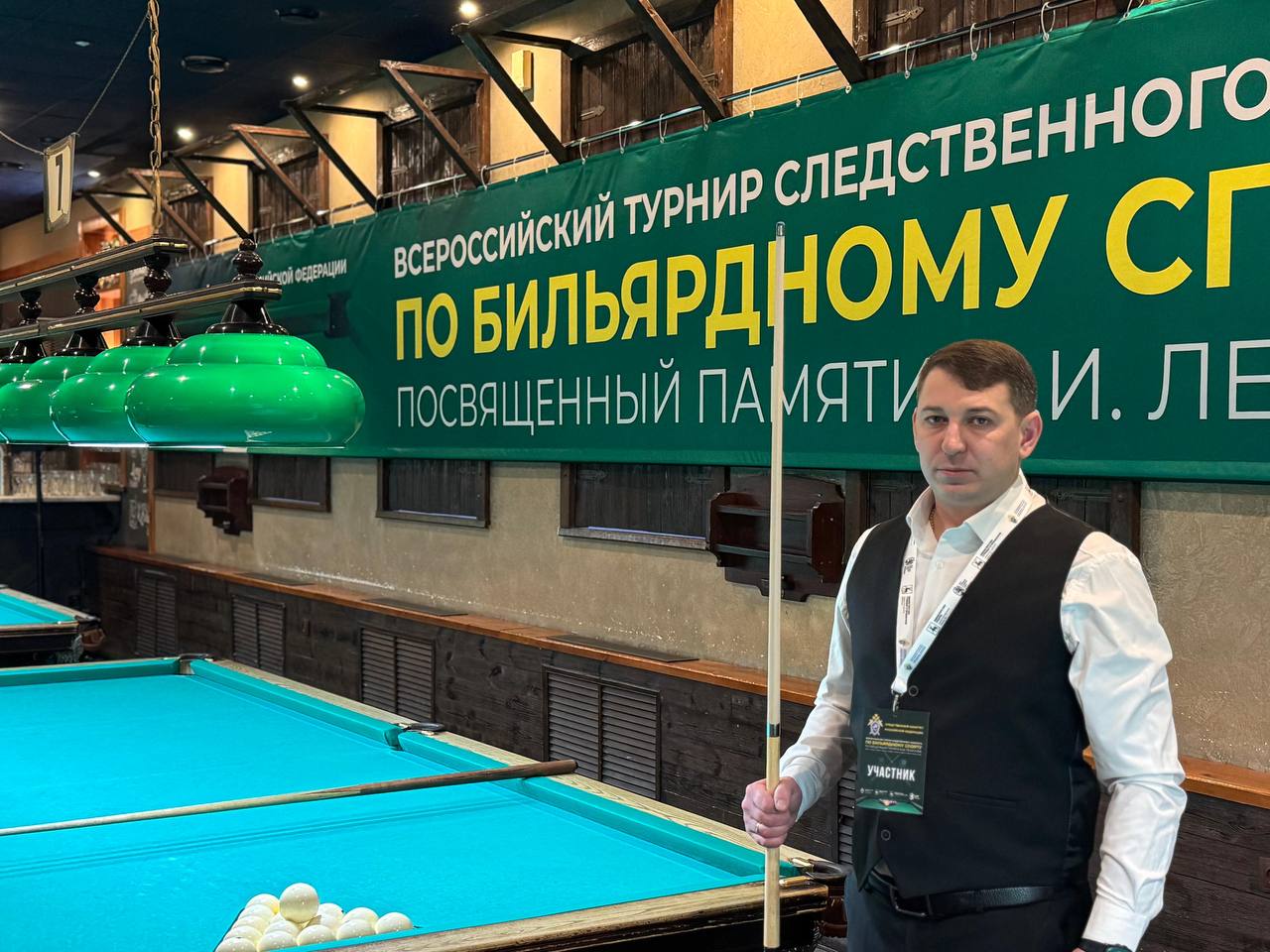 Руководитель следственного отдела по городу Тихвину Су СК России по Ленинградской области Сергей Костенко принял участие во Всероссийском ведомственном турнире по бильярдному спорту, организованному Следственным комитетом России.