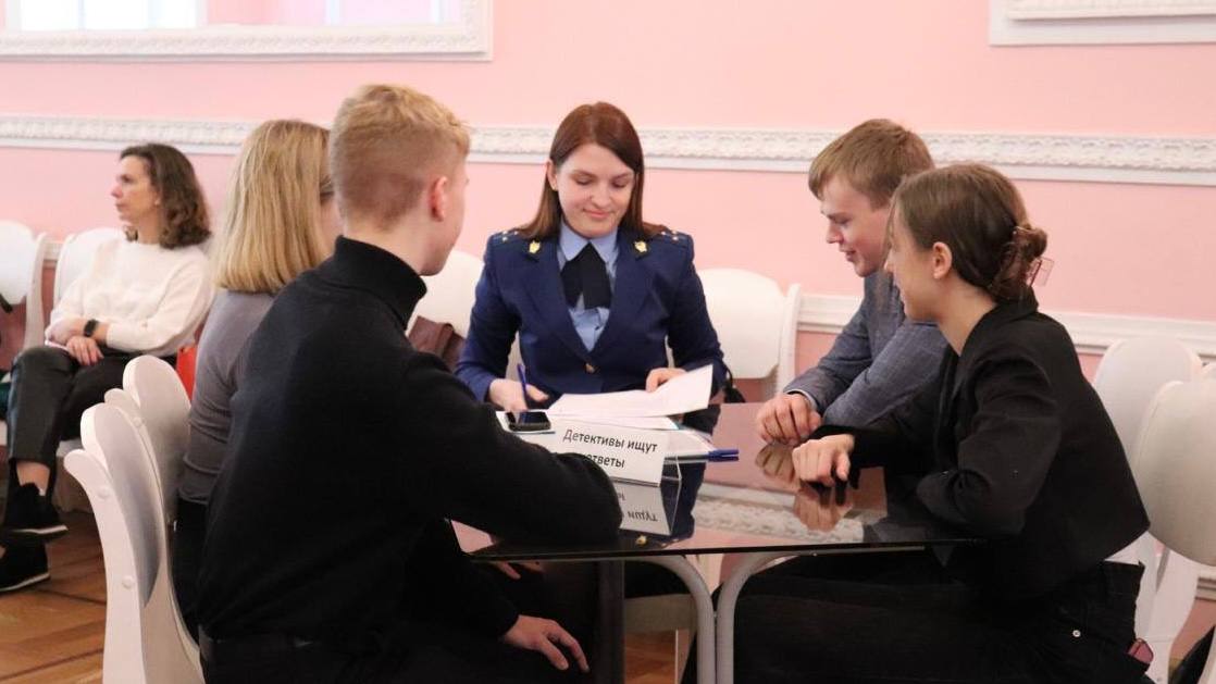 Прокурор отдела по надзору за исполнением законов о несовершеннолетних прокуратуры Санкт-Петербурга Дарья Попова предлагала школьникам узнать литературного героя исходя из описания его правонарушения.