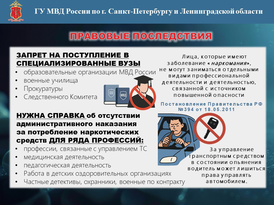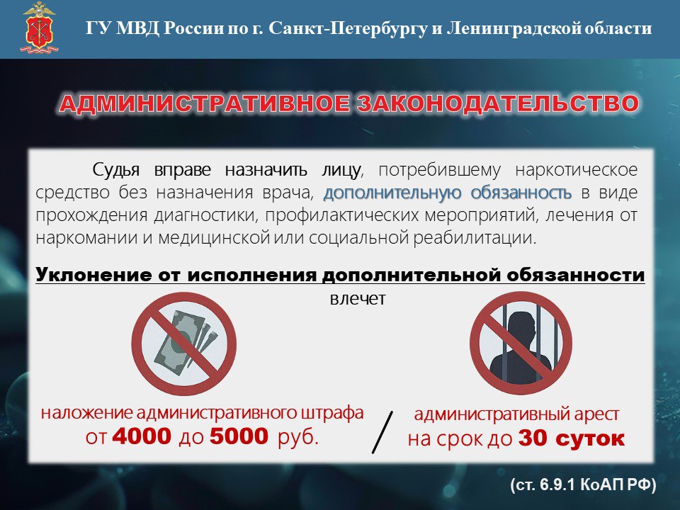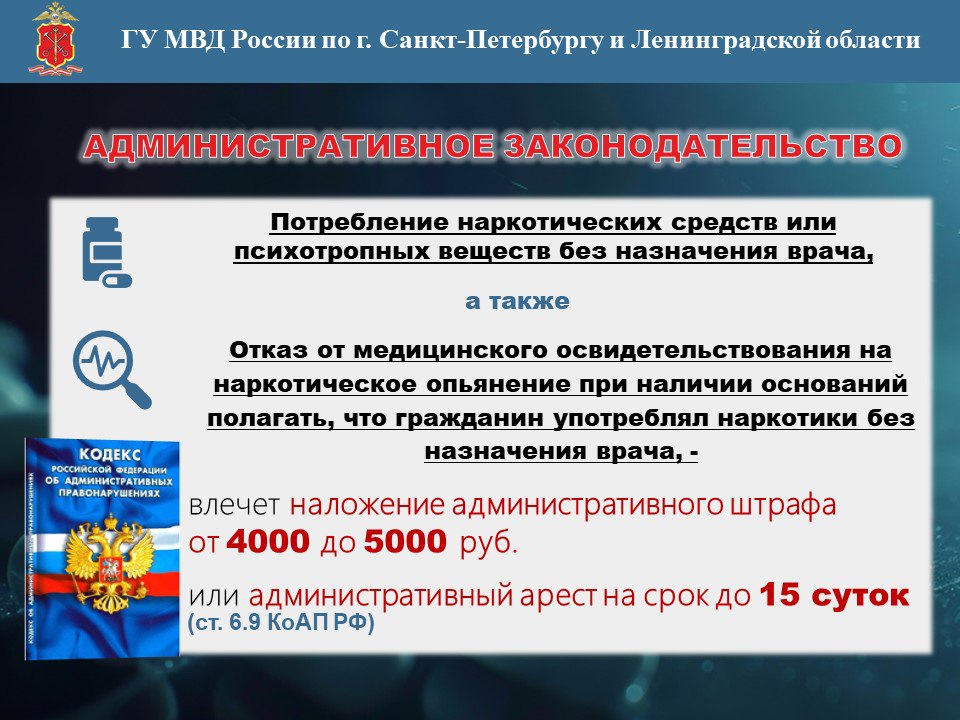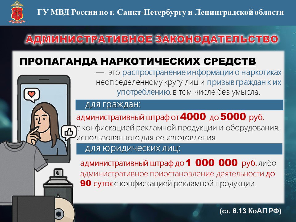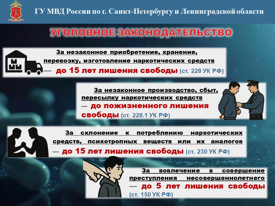 ГУ МВД России напоминает об ответственности за употребление и оборот запрещенных веществ
