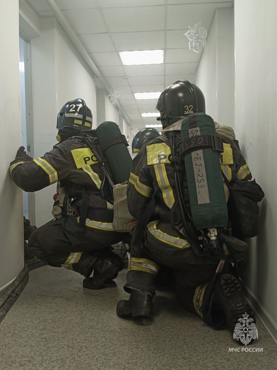 Учения моделировали сценарий возгорания в одном из учебных корпусов.