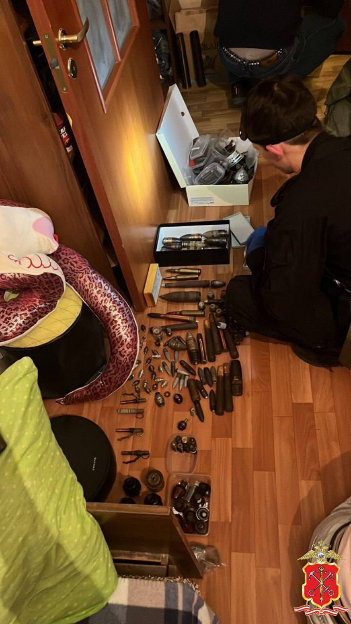 В ходе обыска в жилище, которое, со слов знакомой матери задержанного, принадлежит её умершему отцу, стражи правопорядка обнаружили внушительное количество предметов, конструктивно схожих с боеприпасами и взрывчатыми веществами.