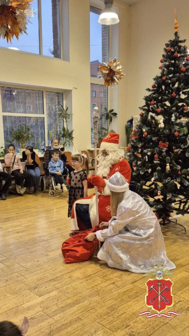 Первыми в городе полицейский Дед Мороз и его внучка Снегурочка посетили маленьких воспитанников Центра содействия семейному воспитанию Фрунзенского района.
