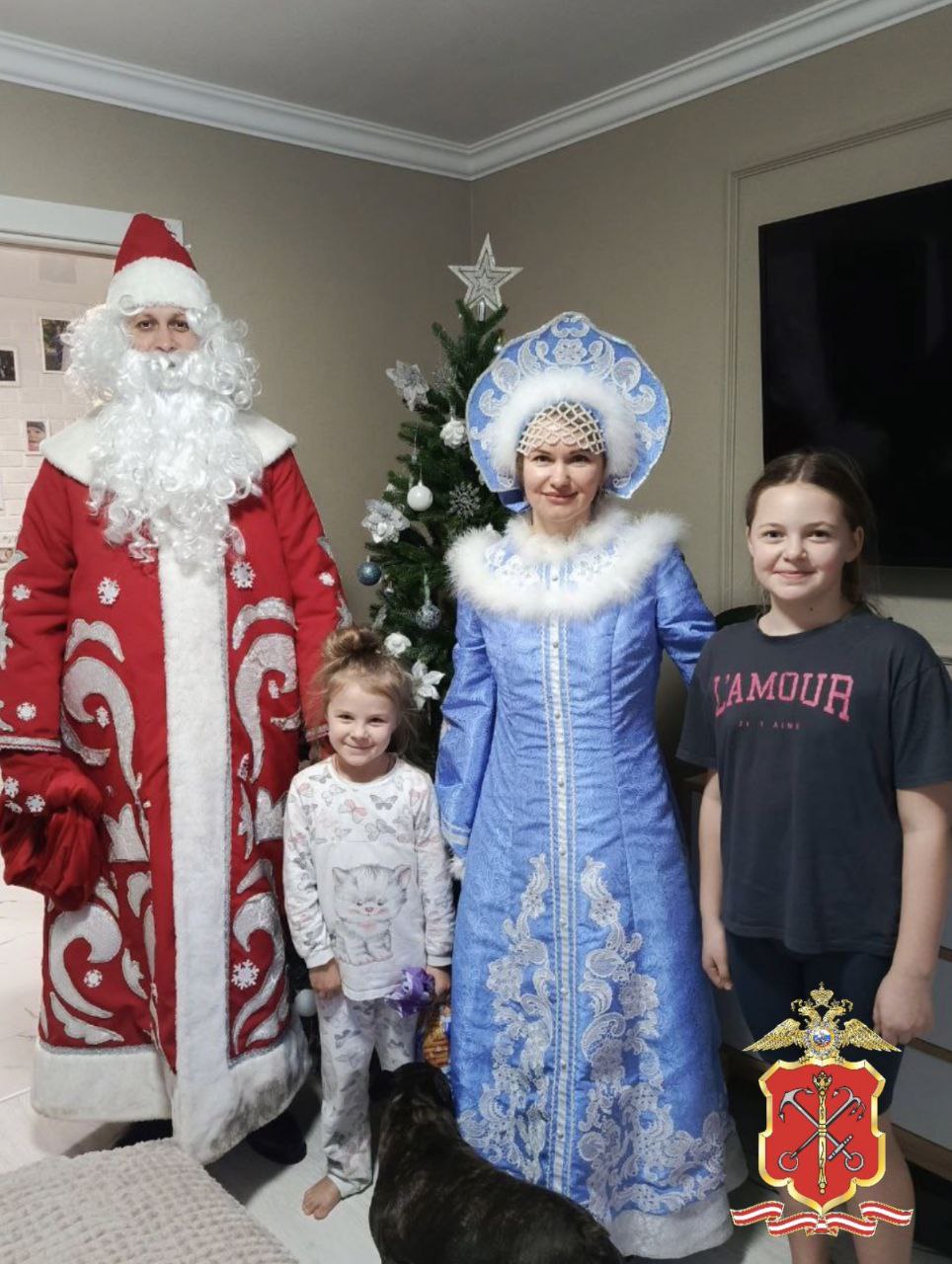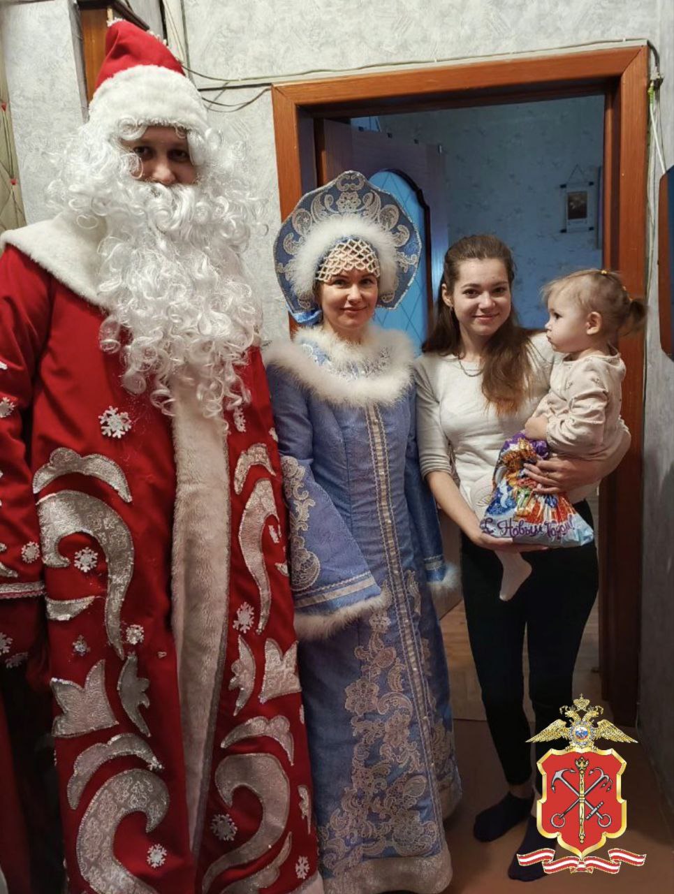 Снегурочка вместе со стражами правопорядка, представителями советов ветеранов и общественных советов при ведомстве посетили с подарками юных жителей Подпорожского и Тосненского районов Ленинградской области, а также Выборгского района Санкт-Петербурга.