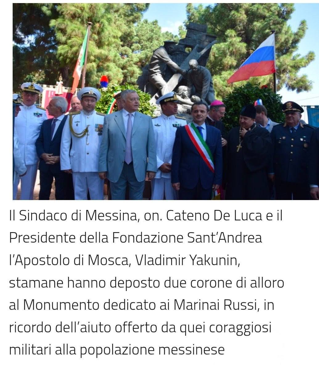 На фотографии, которую я публикую, - торжественная церемония 2018 года у памятника в Мессине с участием тогдашнего мэра Катено де Луки и российских военных и гражданских лиц. К сожалению, с тех пор многое в Италии изменилось. Русофобия похоронила героическую память о нашем общем прошлом. Я надеюсь – ненадолго!