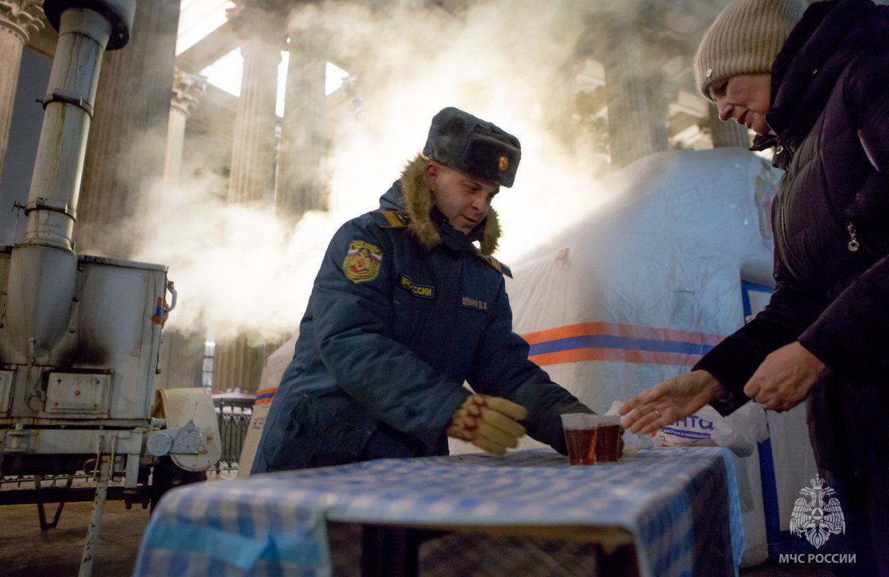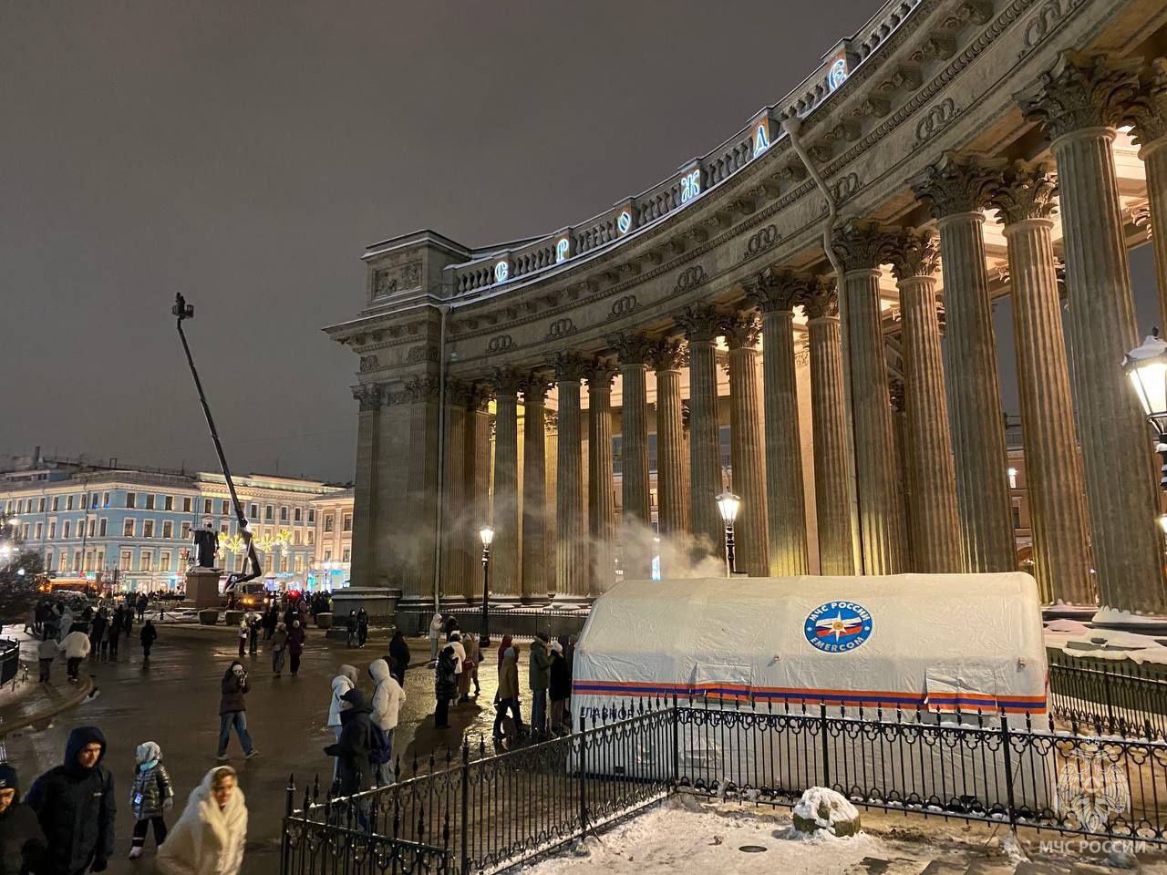 Чтобы часы ожидания у входа в храм не омрачили праздничного настроения прихожан, сотрудники #МЧС_Петербурга развернули мобильный пункт обогрева и отдыха возле крупнейшего центра Рождественского богослужения – Казанского кафедрального собора.