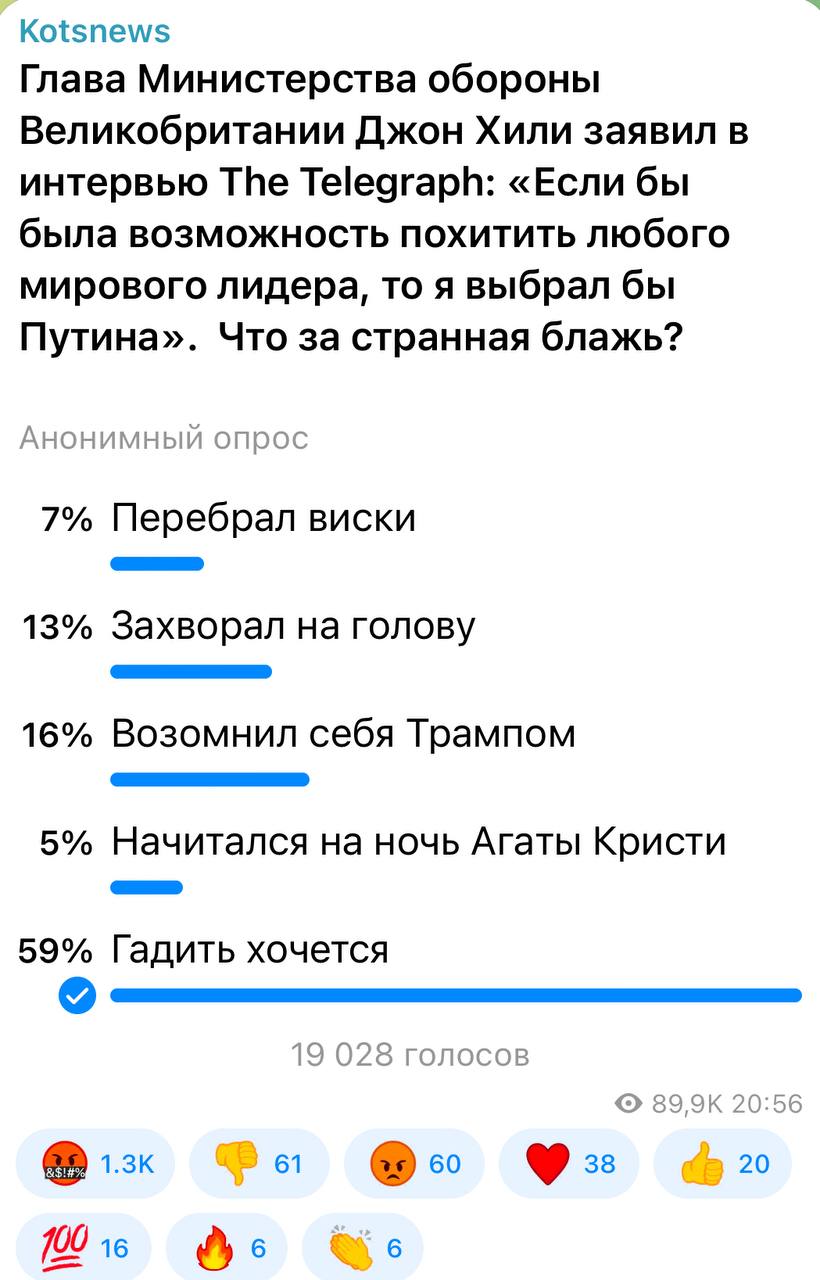 59 процентов подписчиков считают, что Джону Хили просто хочется гадить. У англичанки в отношении нас это - хронически.
