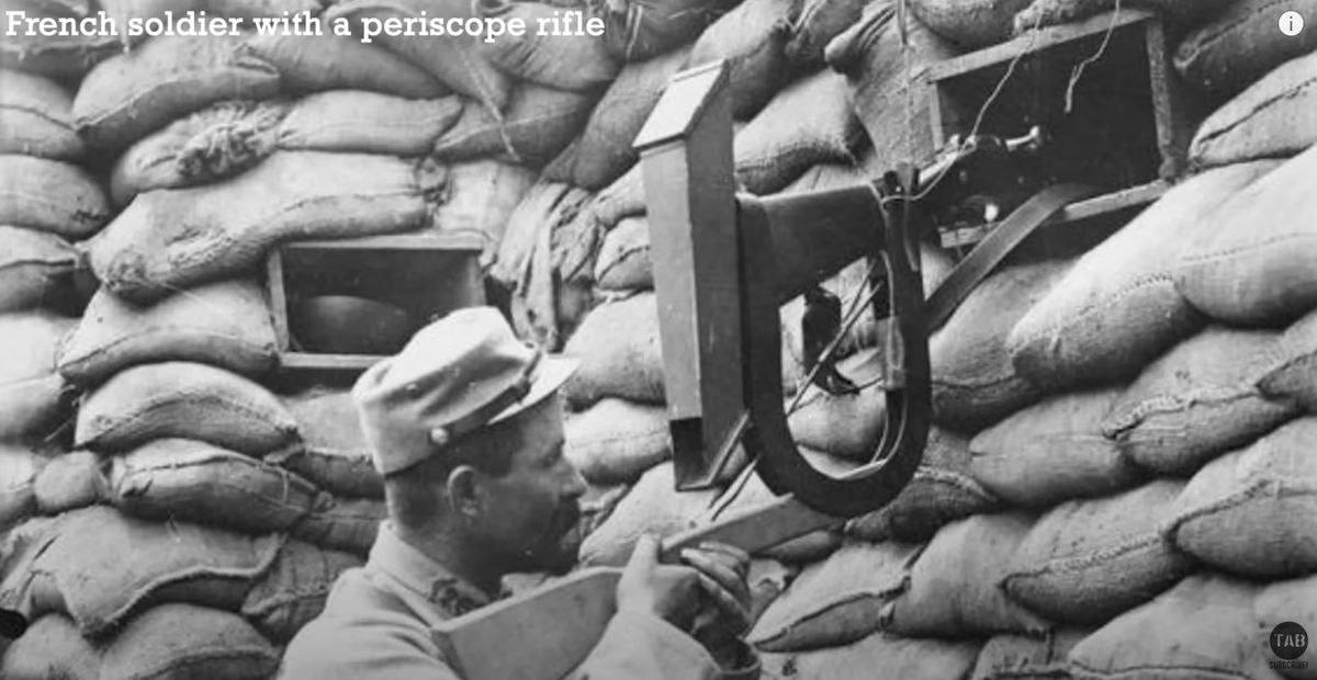 Где-то в середине ПМВ неизвестному военному изобретателю пришла в голову идея, что большая часть людей гибнет, когда высовывает голову из под земли. Проблема в том, что для ведения огня это необходимо делать, хотя и очень не хочется. А вот если снабдить винтовку высоким поворотным креплением и привязать к спусковому крючку тросик, а к прицелу установить систему зеркал, то можно сидеть в окопе или блиндаже и голову не показывать. Позднее вместо зеркал стали использовать перископы, немцы же до сих пор снабжают лафеты (станки) своих пулеметов необходимым для стрельбы из окопа.