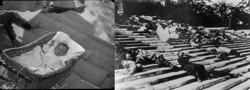 «Восстание на броненосце «Князь Потемкин Таврический». Гнилое мясо, которым кормили матросов, - искра, из нее разгорелось пламя. Искра ушла в народ - народ поддержал мятежников. События в фильме нарастают в режиме бикфордова шнура: один кадр поджигает другой, пожар разгорается, его гул все отчетливее "слышит" толпа в зрительном зале - и тоже не может устоять, тоже воспламеняется, в душах бушует сочувствие этим серым фигуркам на экране.