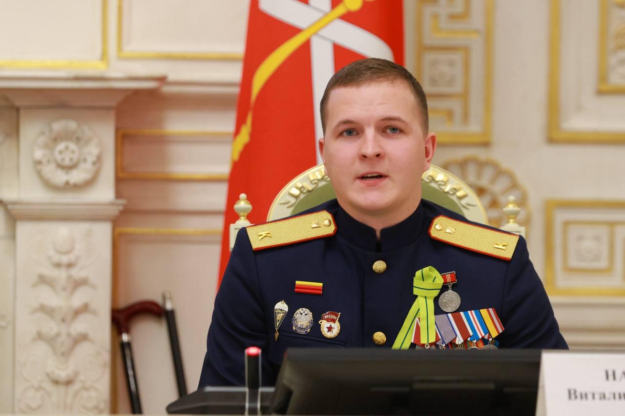 В рамках официальной части презентации с приветственным словом выступил курсант Санкт-Петербургской академии Следственного комитета России, ветеран специальной военной операции Виталий Назимов.