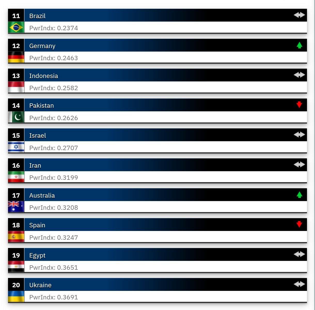 С первой тройкой все понятно. У США серьезный отрыв по ключевым показателям, начиная с беспрецедентного военного бюджета. Хотя в битве ядерных держав это преимущество быстро нивелируется. Особенно, когда у тебя есть средства поражения со «специальной боевой частью», против которых еще не изобрели систем противодействия. У Украины вон спросите.
