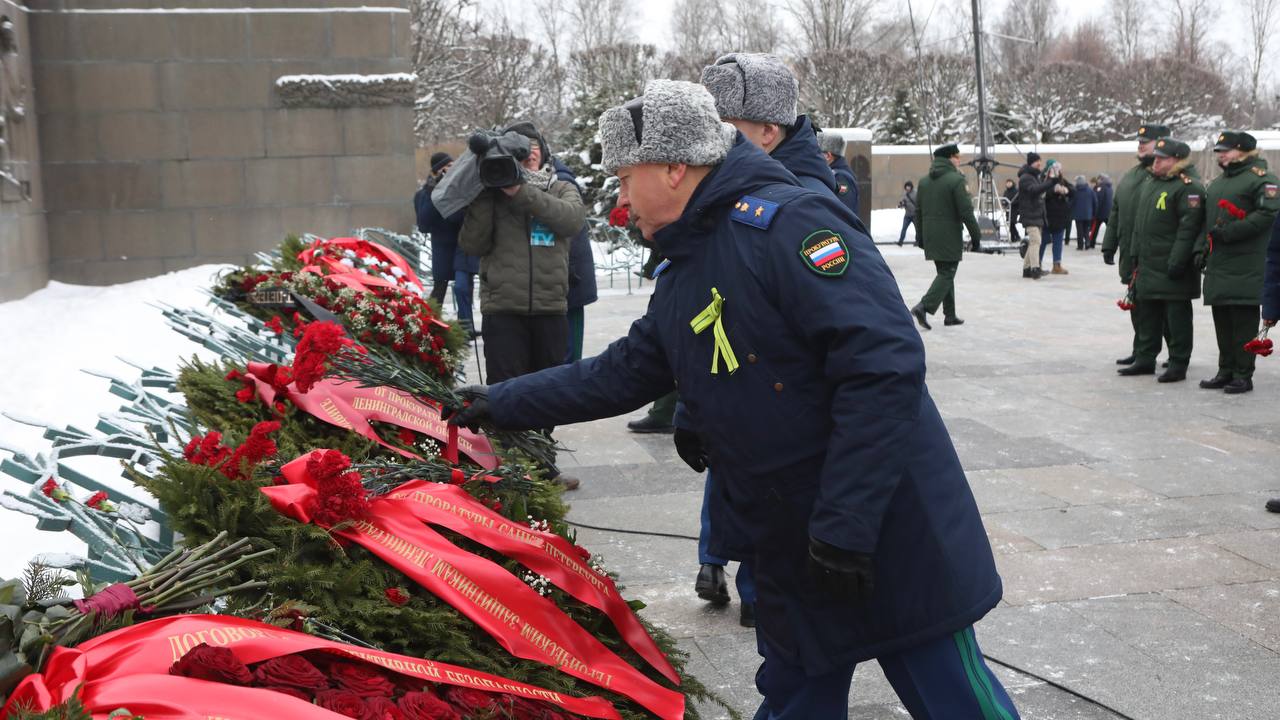 Венки и цветы к монументу «Мать-Родина», почтив память погибших, возложили прокурор г. Санкт-Петербурга Виктор Мельник, Северо-Западный транспортный прокурор Владимир Владимиров, военный прокурор Ленинградского военного округа Алексей Найда, руководство прокуратуры Ленинградской области, представители Санкт-Петербургского юридического института (филиала) Университета прокуратуры Российской Федерации, заместители прокурора г. Санкт-Петербурга, работники органов прокуратуры города, ветераны и пенсионеры надзорного ведомства.