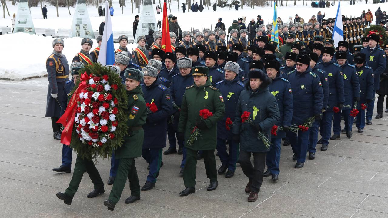 На Пискаревском мемориальном кладбище состоялась торжественно-траурная церемония возложения цветов и венков, посвященная 82-й годовщине полного освобождения Ленинграда от фашистской блокады.