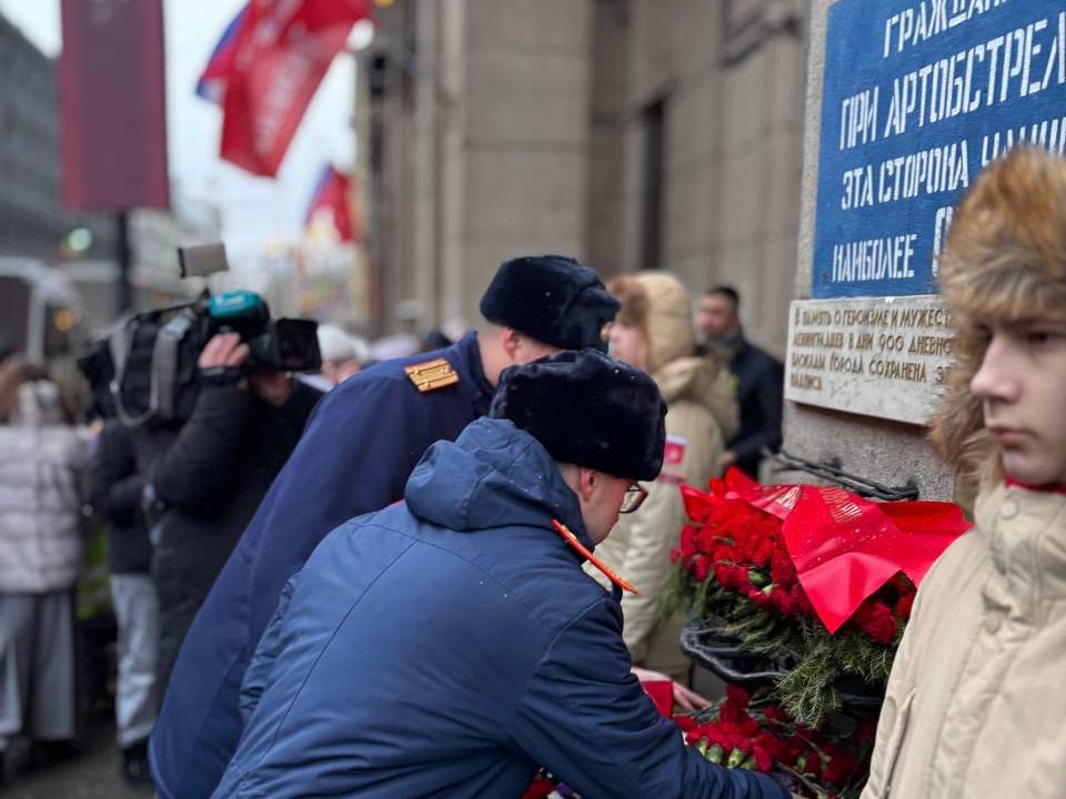 Так, сотрудники следственного отдела по Центральному району возложили цветы к мемориальной доске, распложенной на доме 14 по Невскому проспекту. Надпись на ней предостерегала ленинградцев: «Граждане! При артобстреле эта сторона улицы наиболее опасна!»