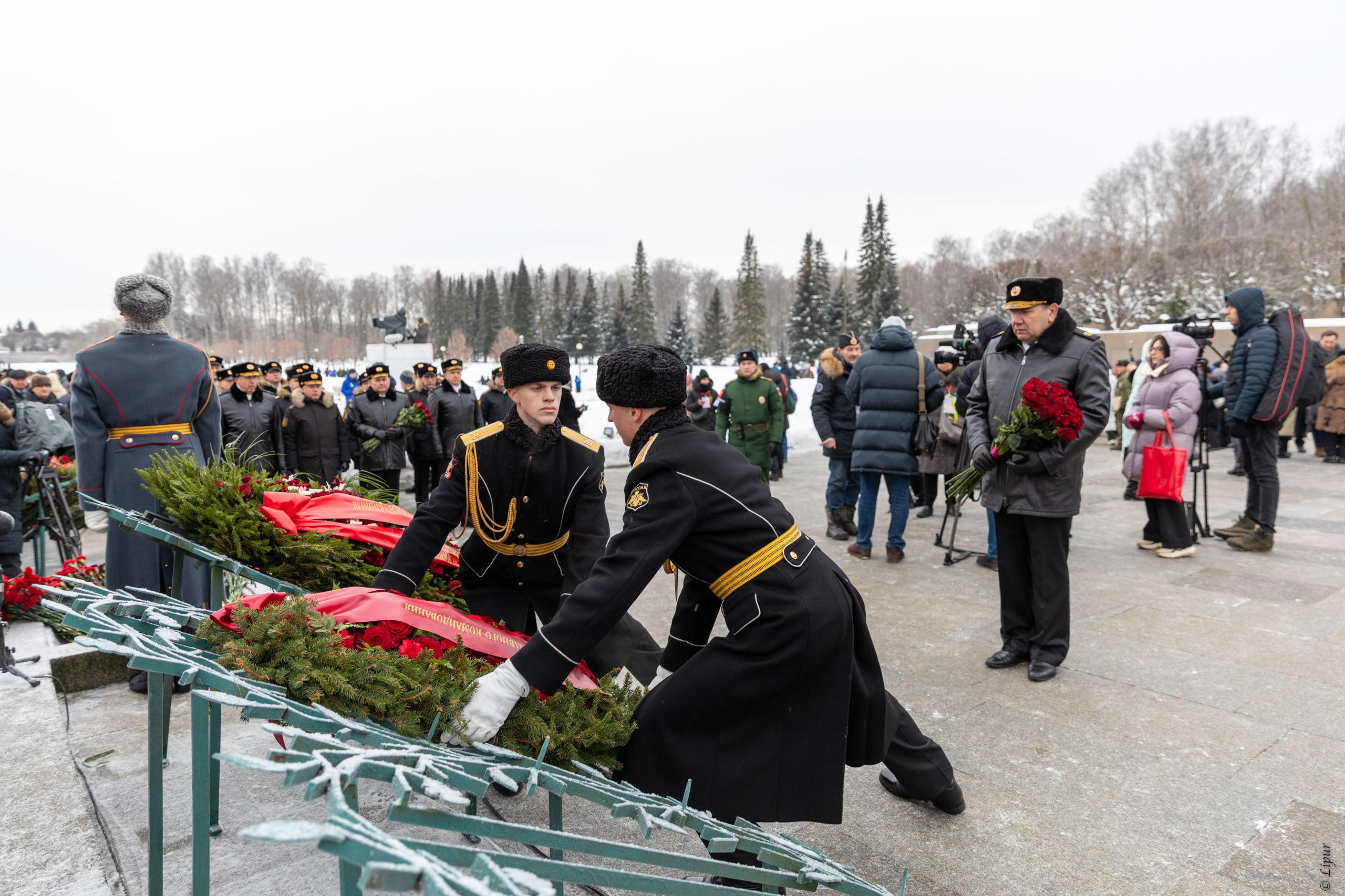 Сегодня, в 82-ю годовщину полного освобождения Ленинграда от фашистской блокады, главнокомандующий Военно-Морским Флотом адмирал флота Александр Моисеев принял участие в церемонии возложения венков и цветов к монументу «Мать-Родина» на Пискарёвском мемориальном кладбище.