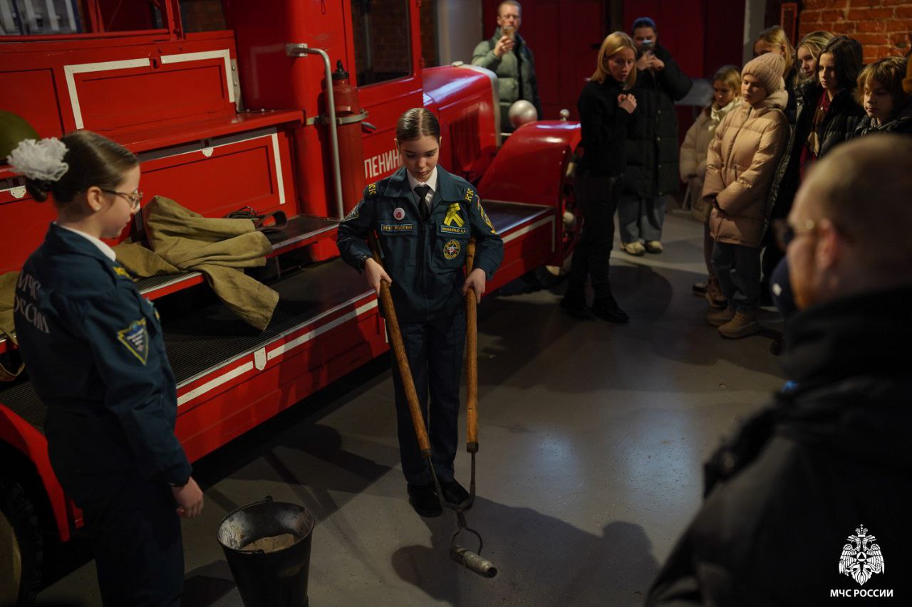 Школьники смогли лично познакомиться с историей мужества и самоотверженности, проявленными жителями блокадного Ленинграда, его защитниками, а также ленинградскими пожарными и бойцами МПВО в дни вражеской осады города на Неве.