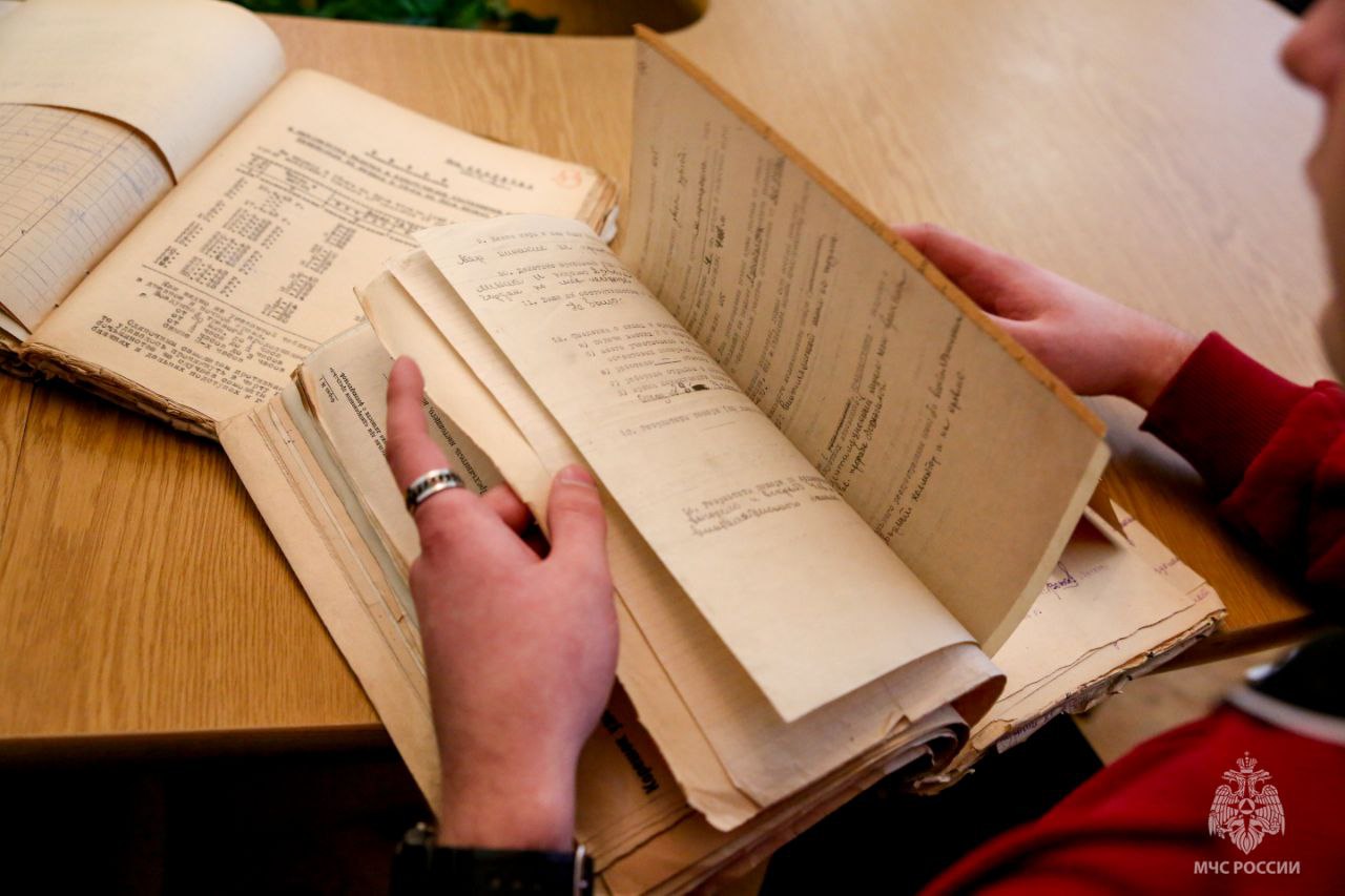 Ребята познакомились с историческими источниками, которые обычно хранятся в фондах: архивные материалы и сводки, схемы тушения пожаров, продуктовые карточки, дневники пожарных и бойцов МПВО.
