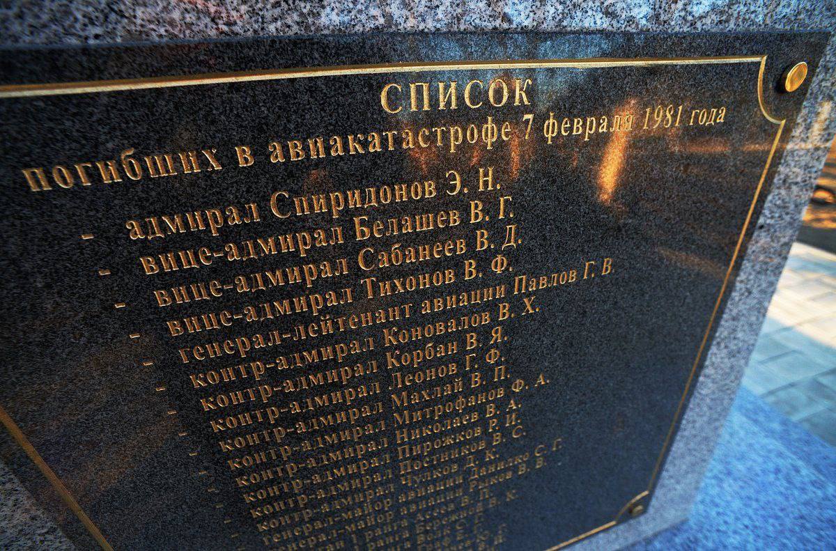 7 февраля 1981 года при взлете с аэродрома Пушкино под Ленинградом разбился Ту-104 со всем экипажем и 44 пассажирами. Среди которых 13 адмиралов включая командующего Тихоокеанским флотом Эмиля Спиридонова, 3 генерала, 12 капитанов первого ранга и полковников. Высшее руководство и цвет ТОФа!